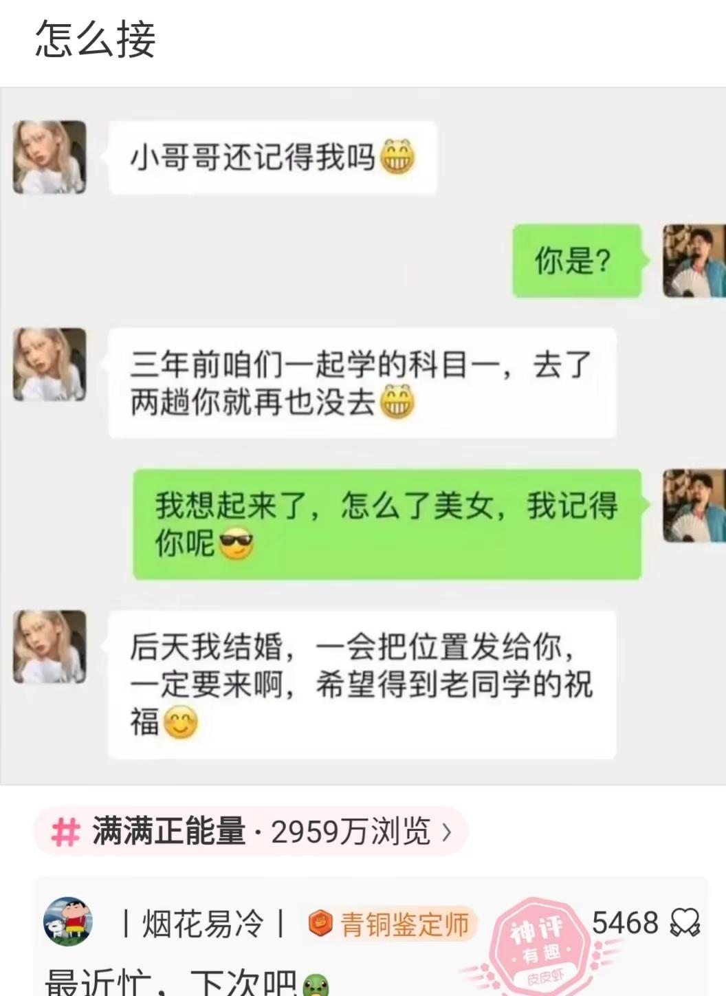 聊天时,你要带点梗 【日常问候篇】 1. “在吗?” → 出来挨夸! 2. “早