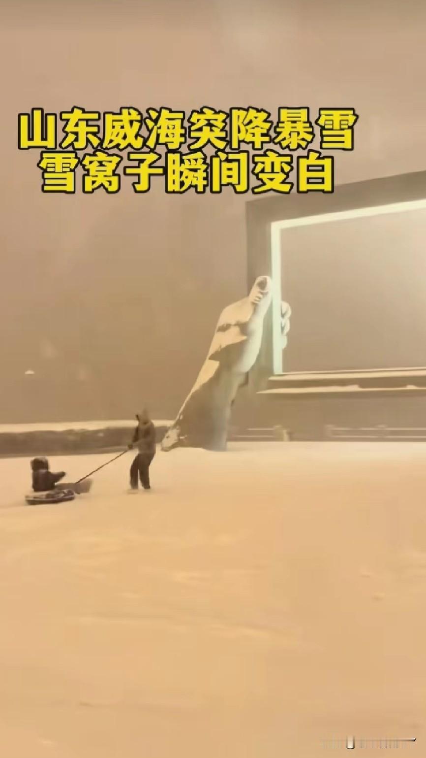 山东威海这雪下的太“豪横”啦!黑夜里,密集的雪片遮挡了视线,广场上全是尽情撒欢的