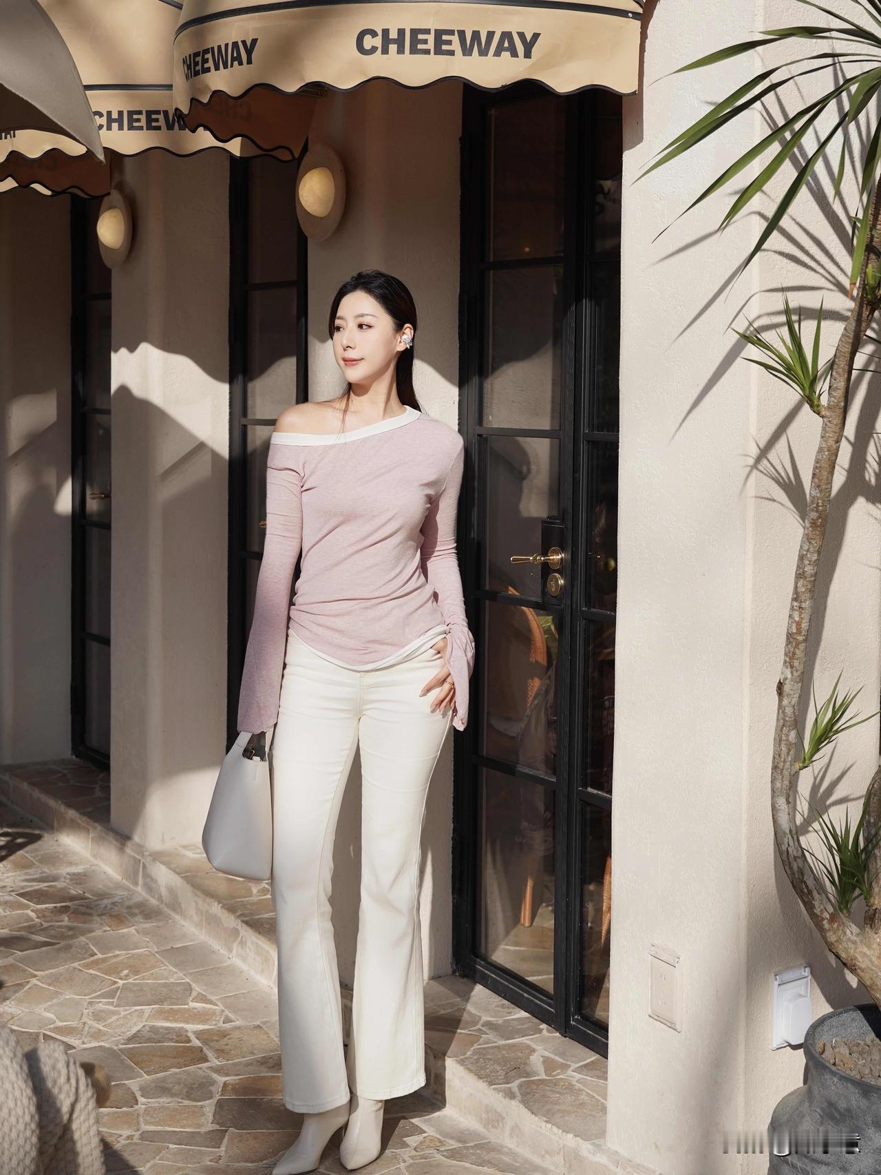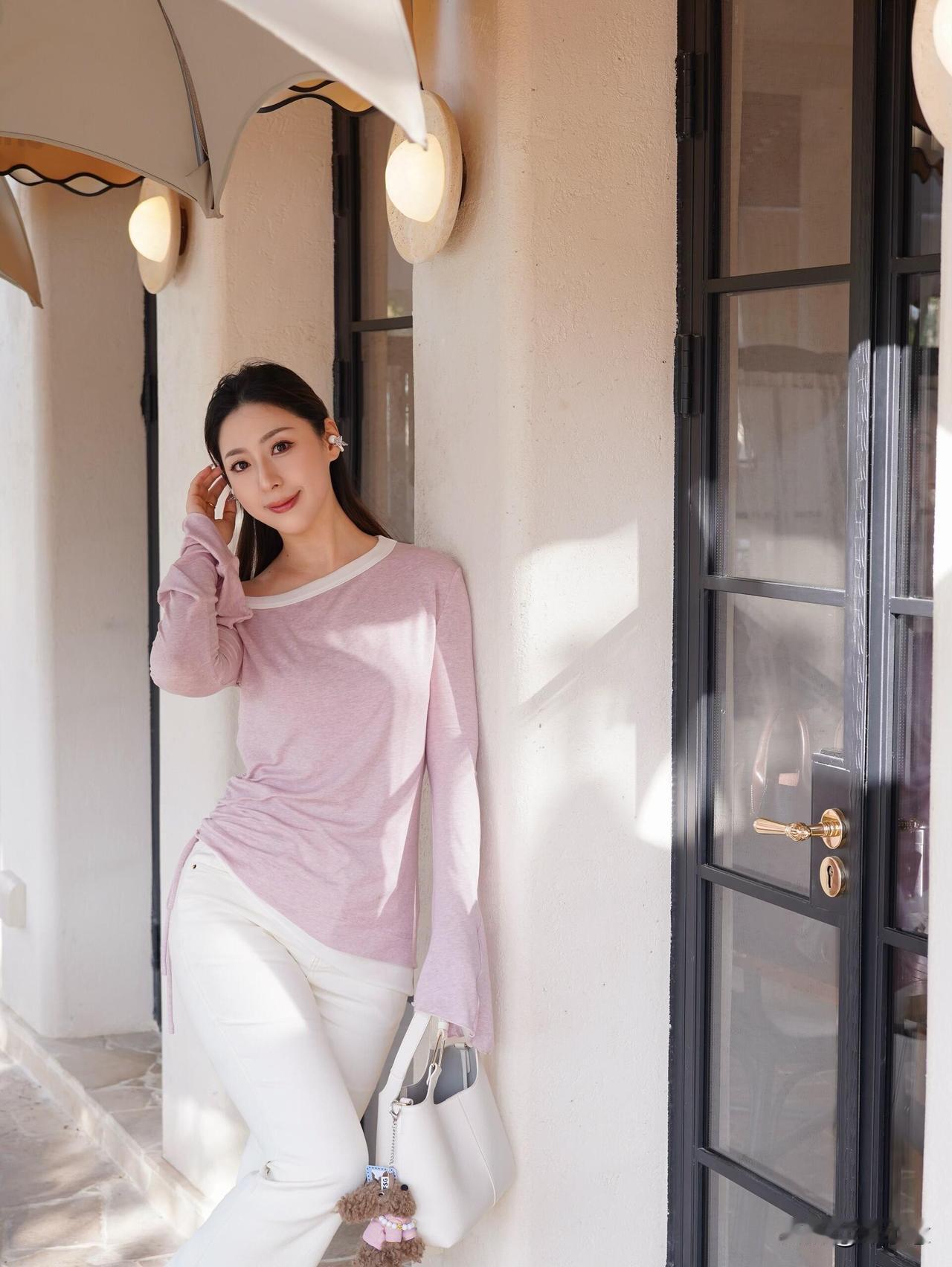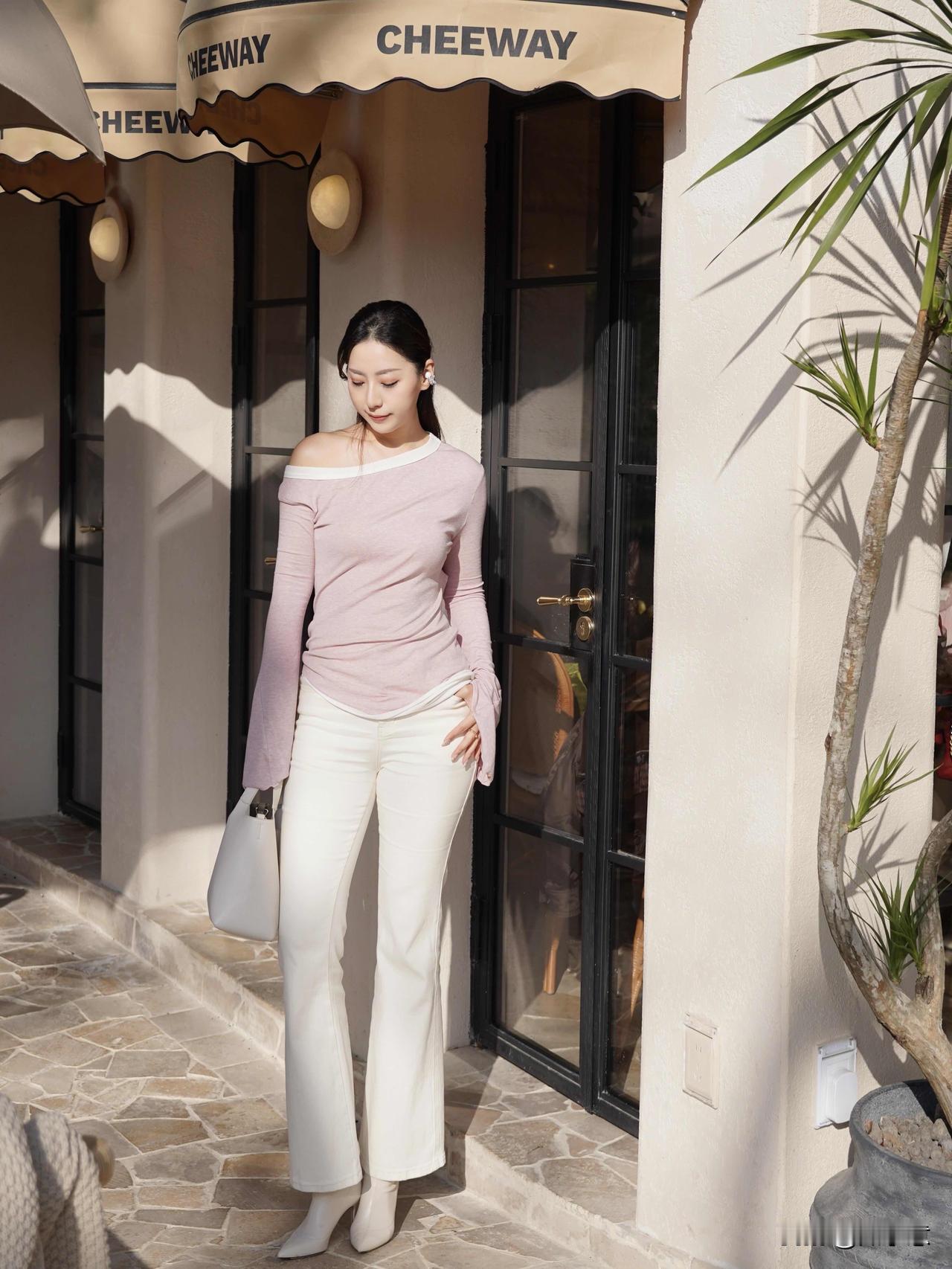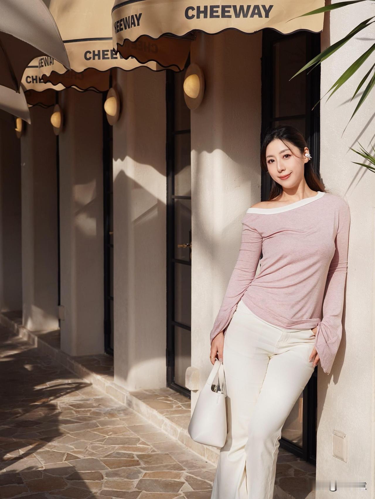 初春穿搭💐给春天一点「颜色」瞧瞧|||周末和姐妹的咖啡局 阳光也太明媚了吧! 粉白长袖搭配白色牛仔裤 整个人都温柔啦!