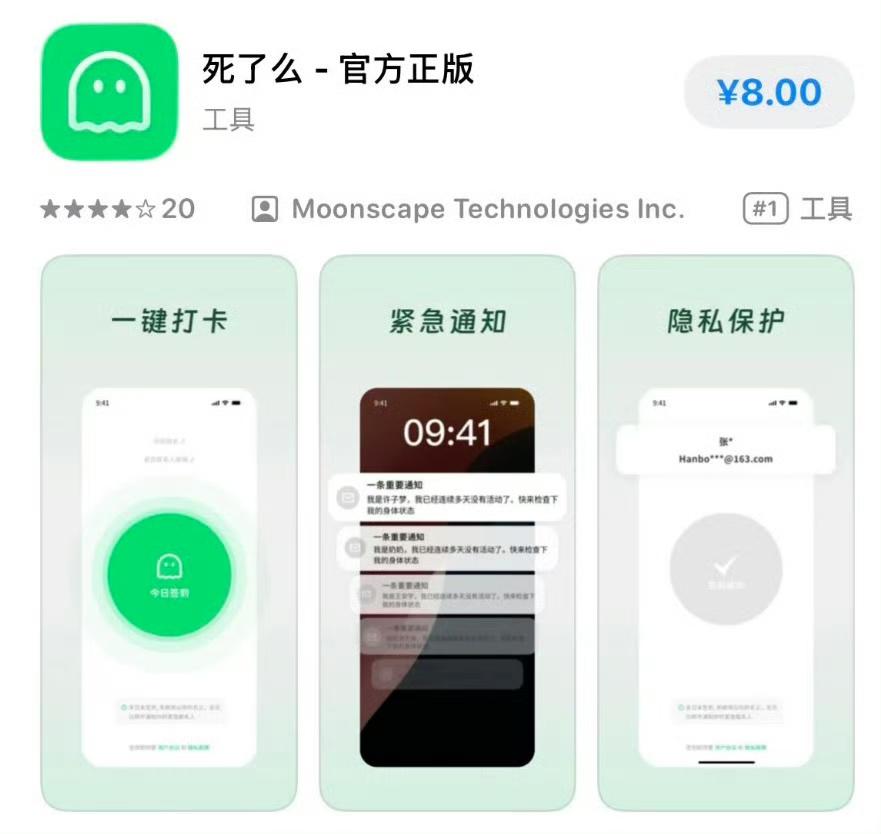 “您有新的死了么订单,请及时处理” “死了么”APP凭独居签到功能火了,登顶苹果商店付费榜,8块钱买个“生死提醒”,连续2天不签到就给紧急联系人发邮件预警,主打一个为独居人服务。 别看它名字有点晦气,其实是三个95后花一千多块,一个月时间开发出来的小工具,没想到居然戳中了上亿独居者怕出事没人知道的焦虑。 “死了么”App负责人:没考虑改名 “死了么”App突然爆火