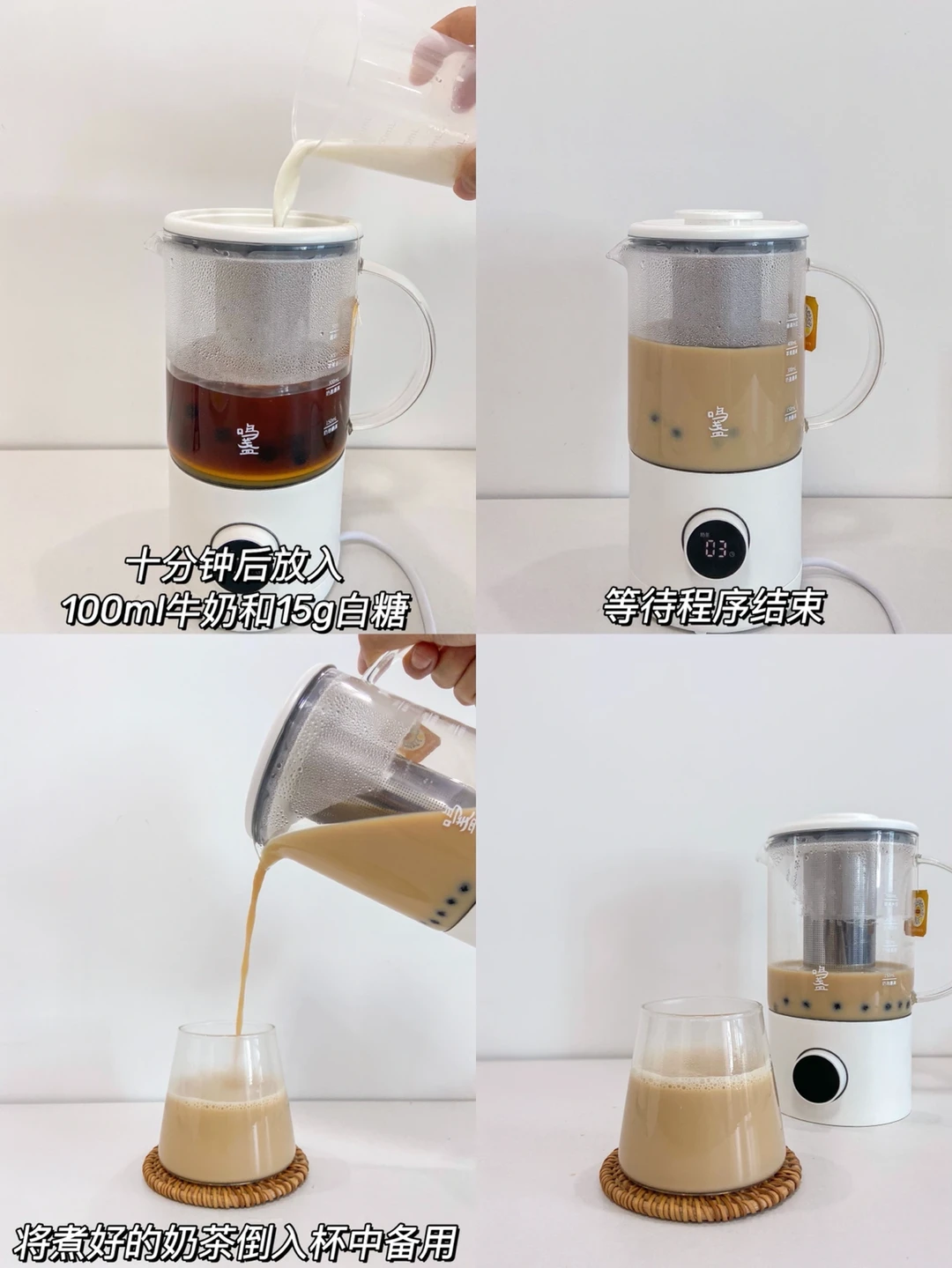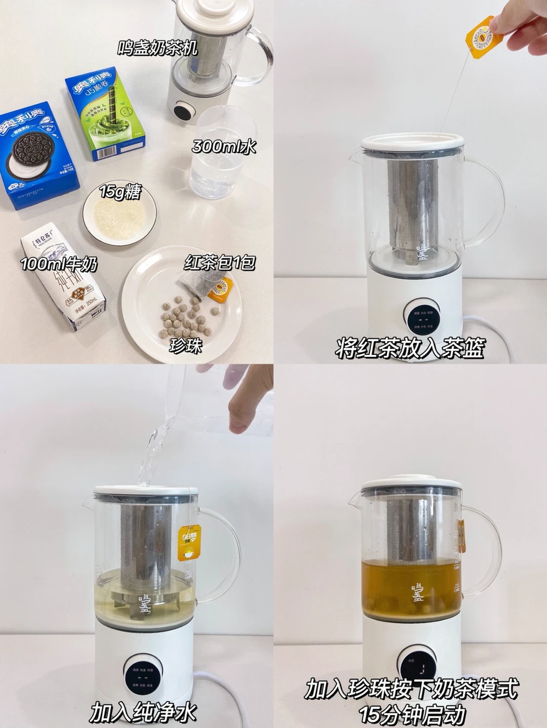 1️⃣将红茶放入茶篮 加入纯净水 珍珠 选择奶茶模式