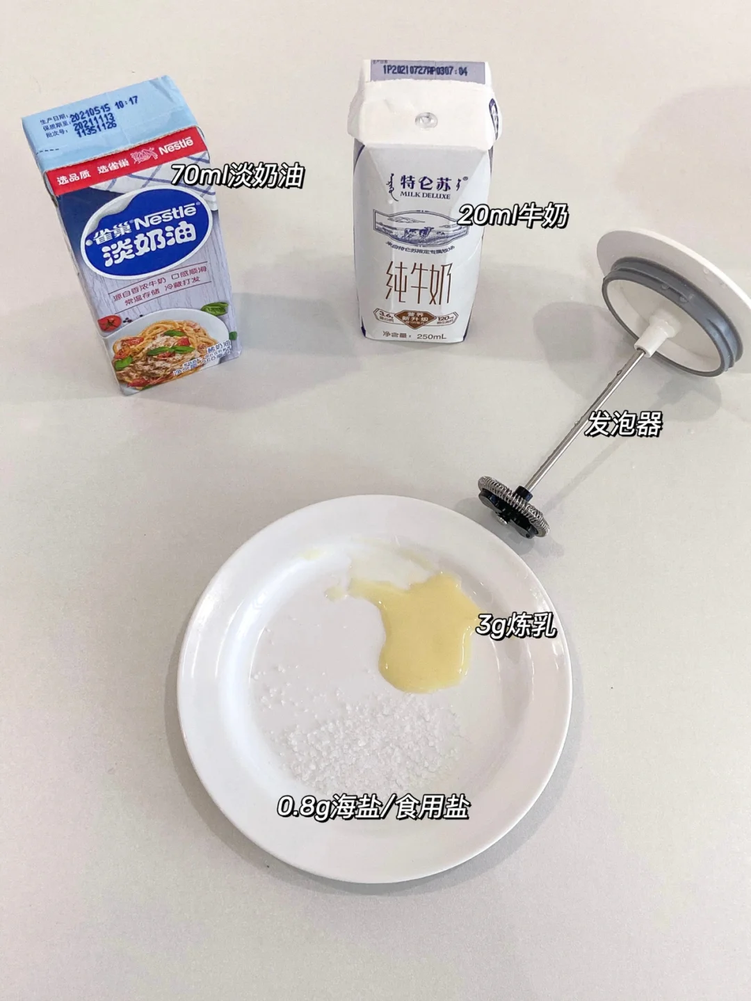 70ml淡奶油 20ml牛奶 海盐0.8g 炼乳3g