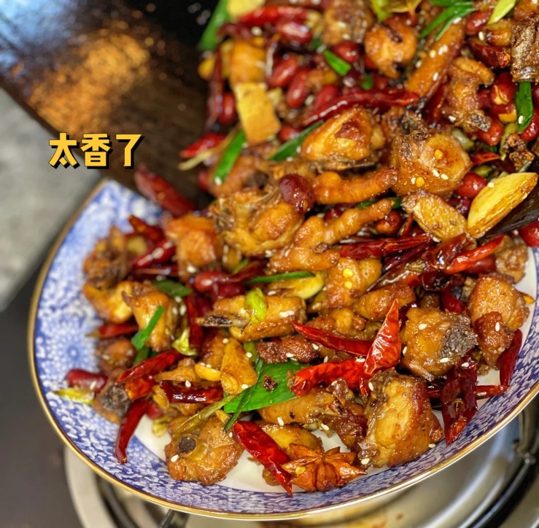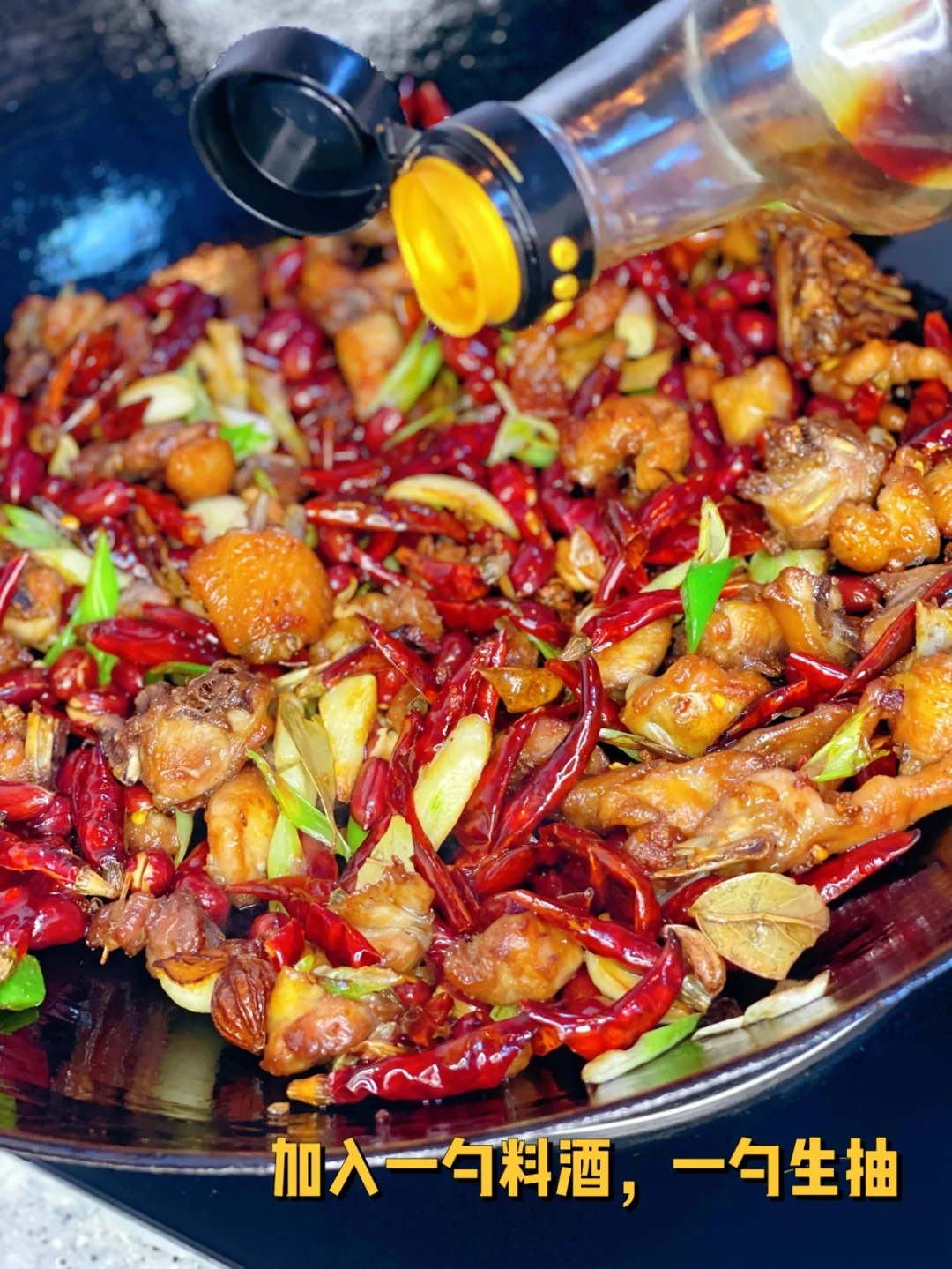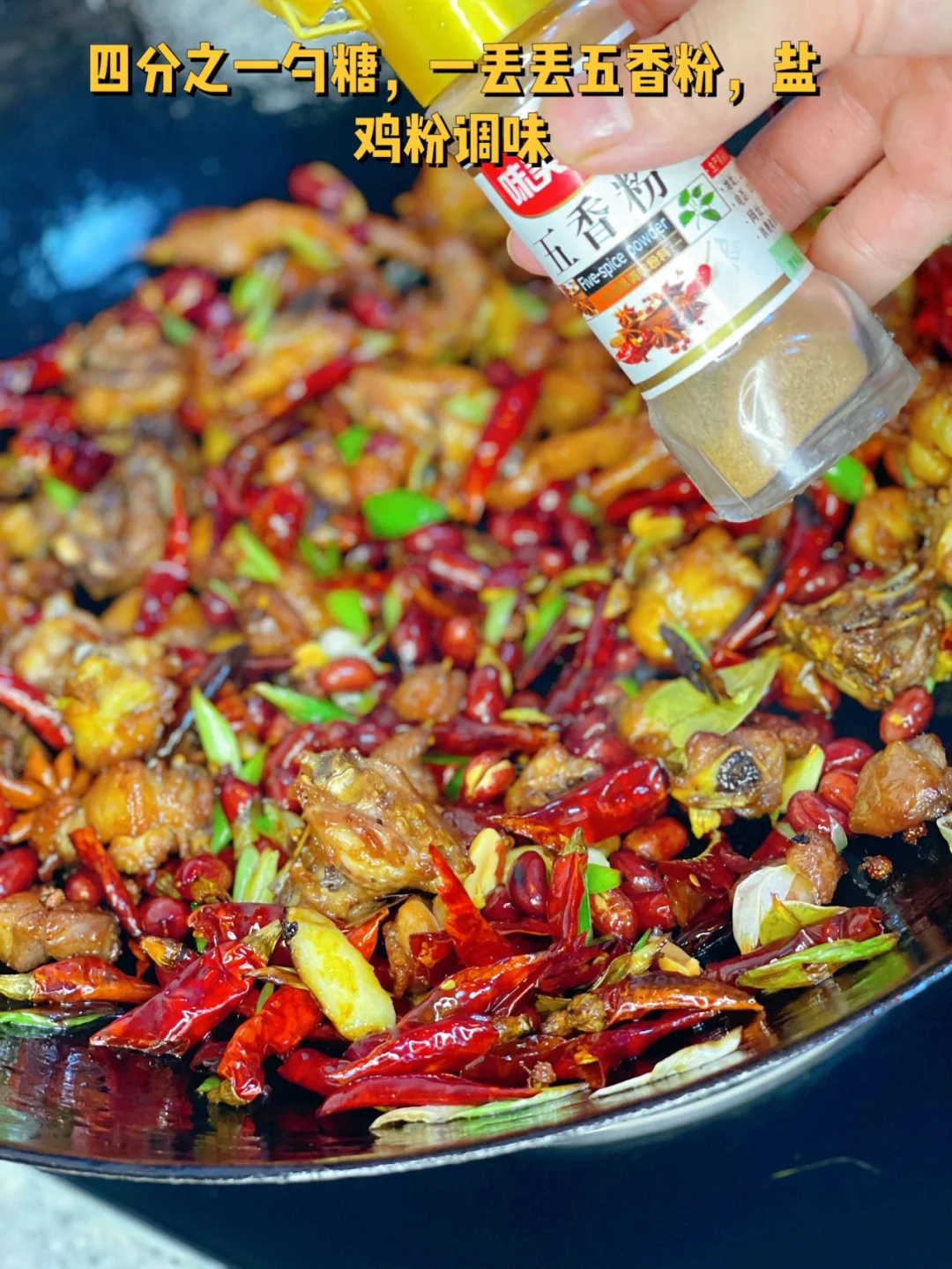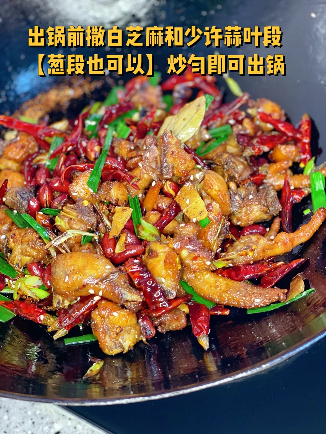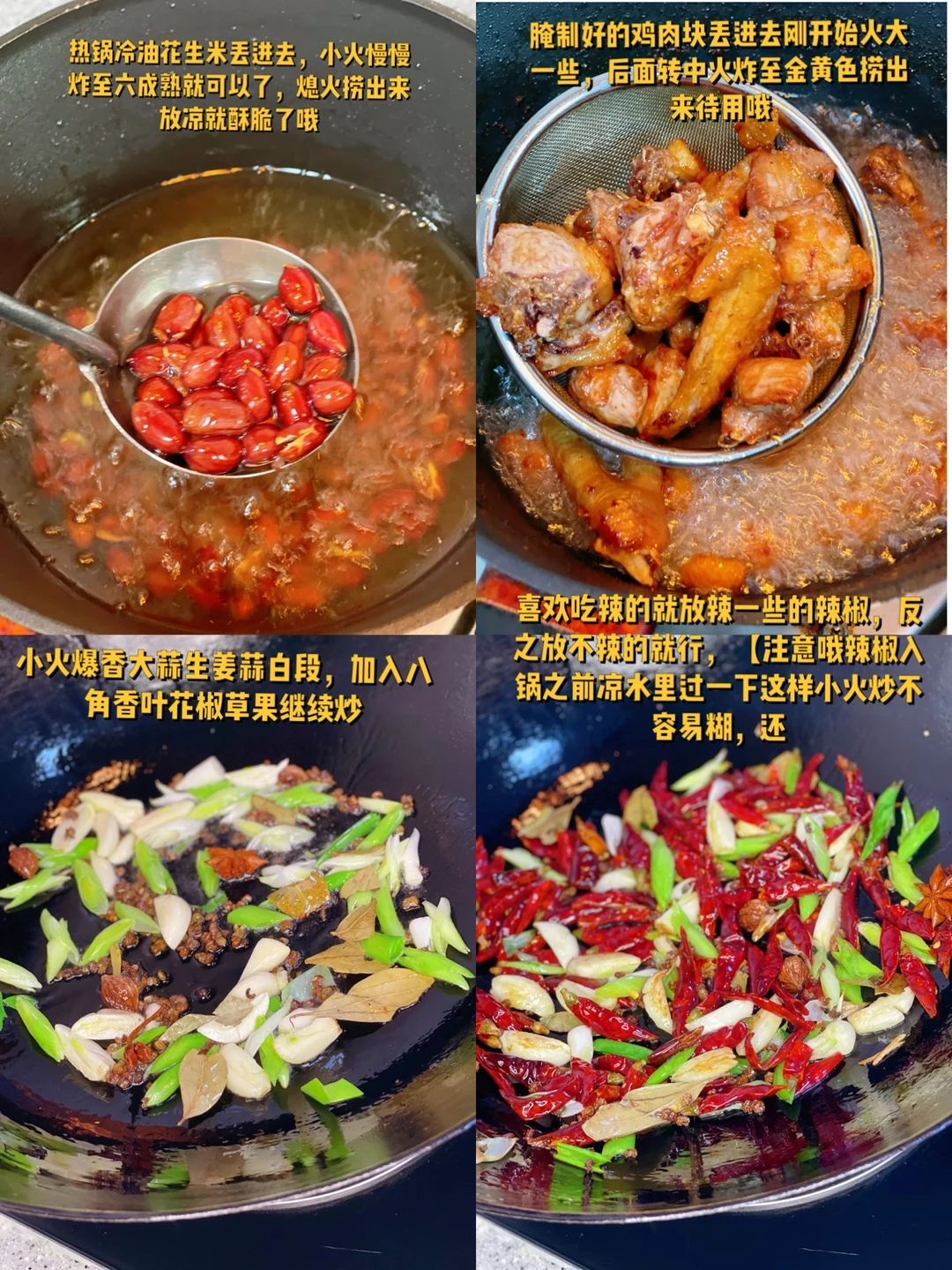 10. 炸好的鸡块儿和花生米丢进去快速翻炒,别开大火哦