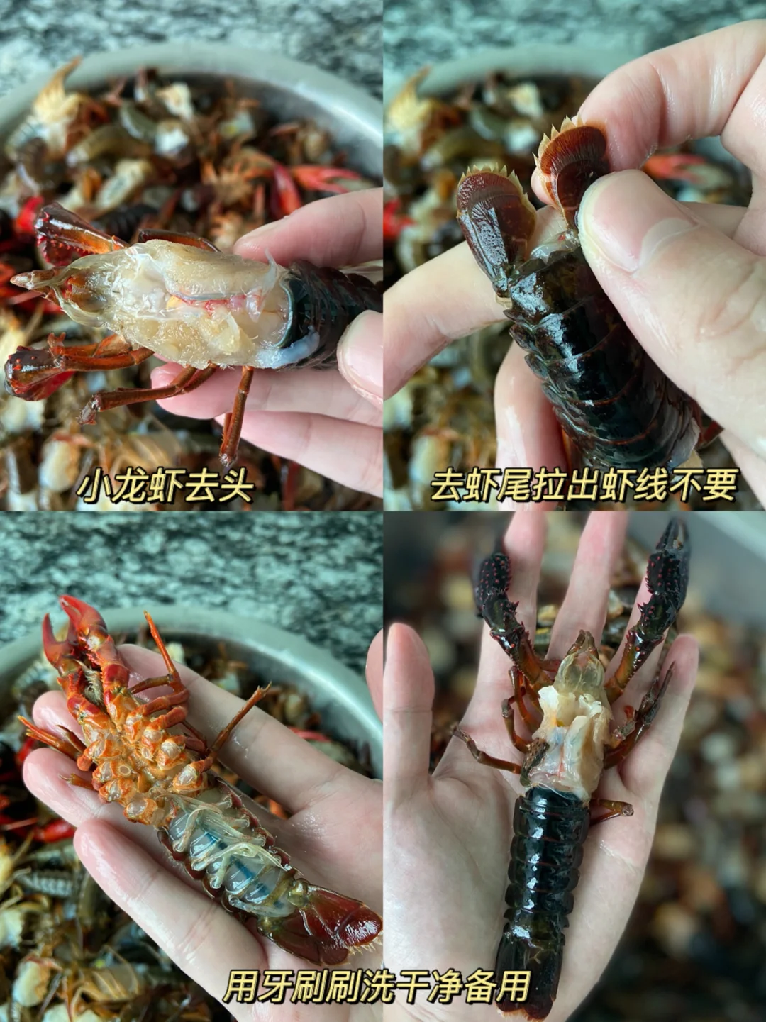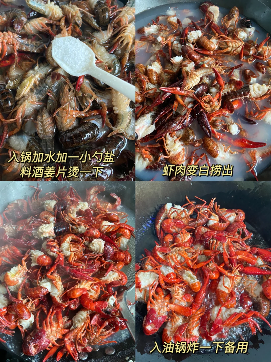 2️⃣入锅加水加老酒几片生姜煮沸捞起 热油炸小龙虾