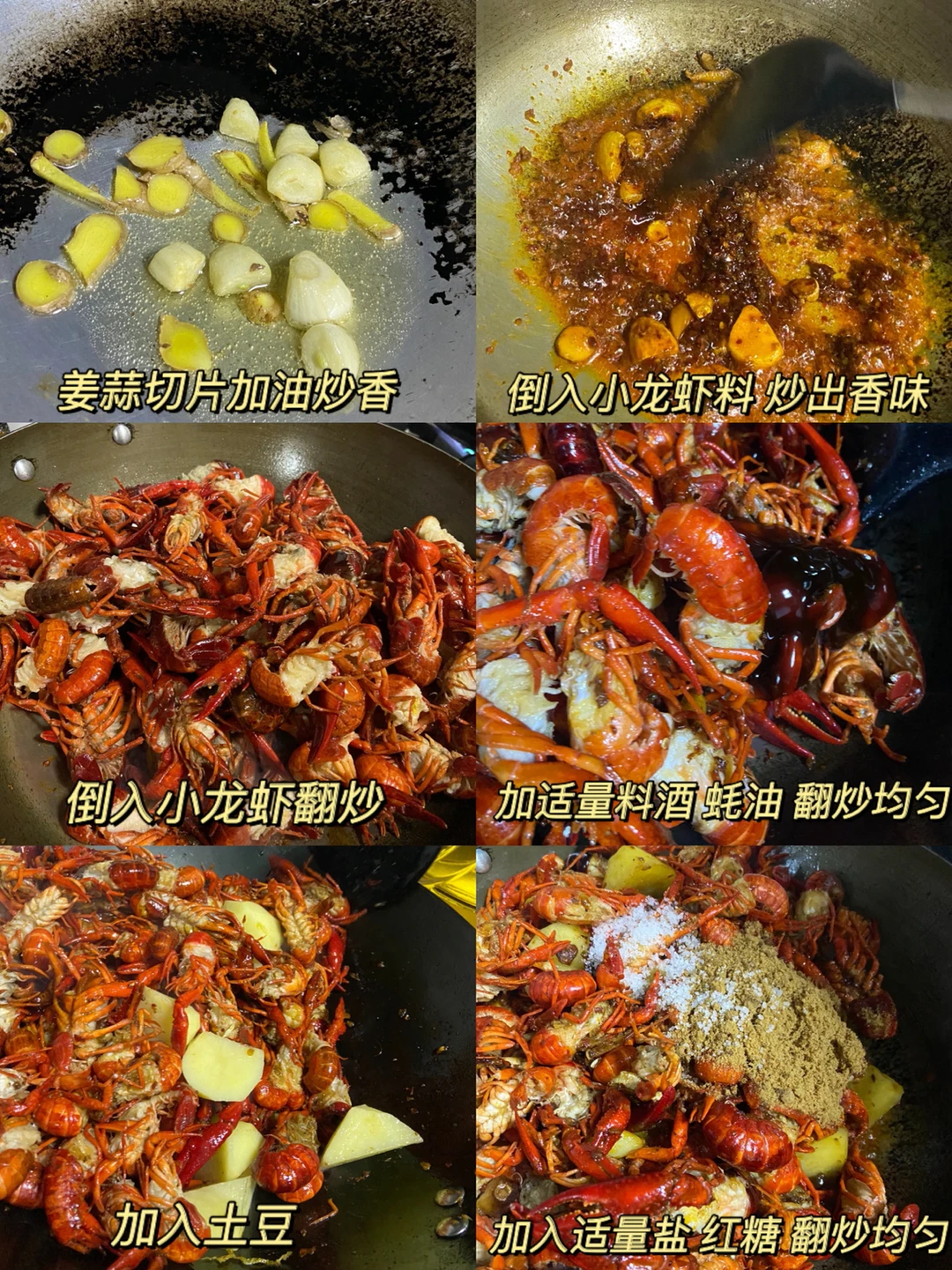 3️⃣姜蒜入锅加油翻炒 加入小龙虾料炒出香味 (根据多少来放 8斤我用的一包的量)