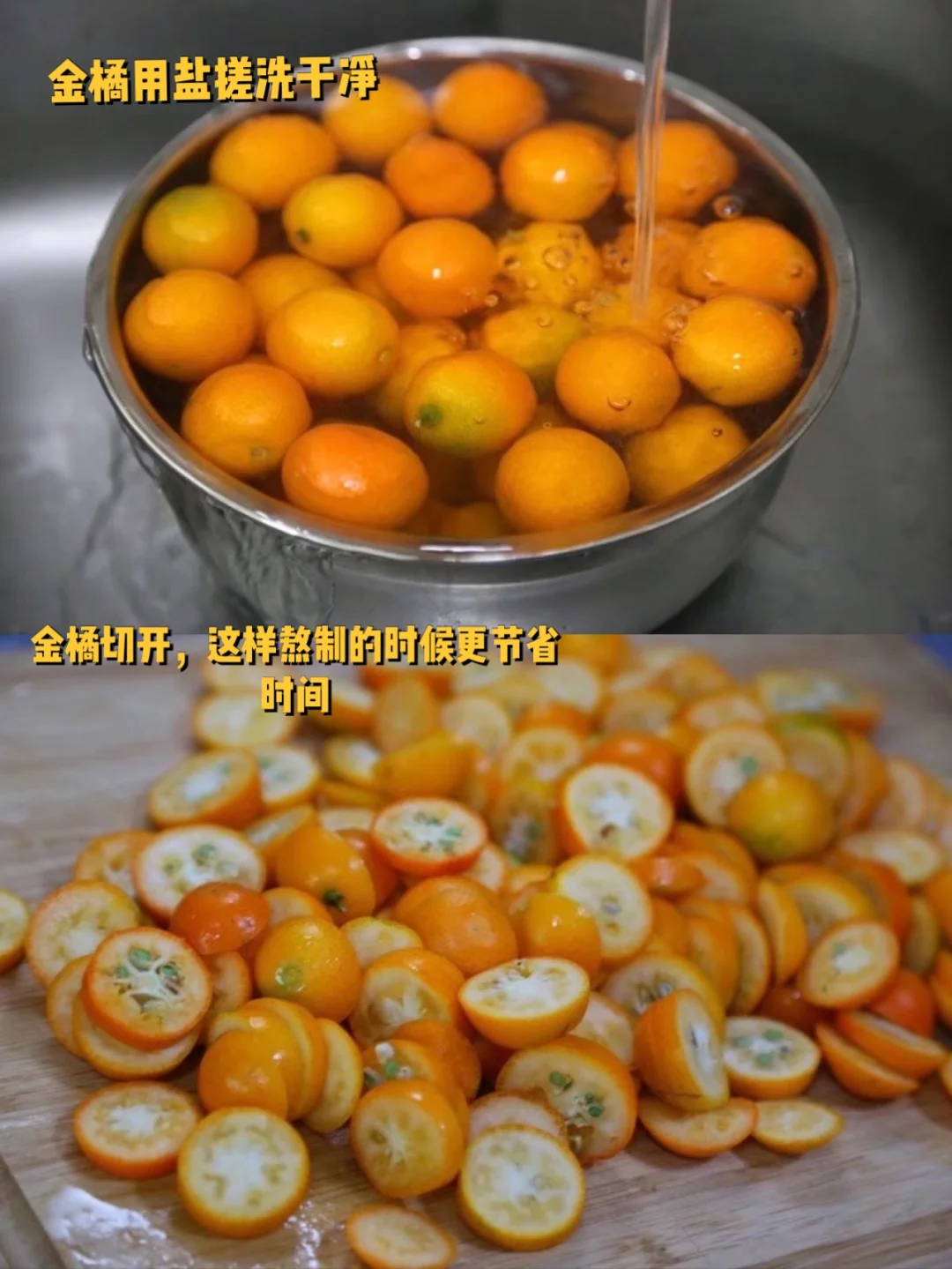 金桔外皮金黄,皮薄肉嫩,汁多味甜,含有丰富的蛋白质、维生素及多种微量元素。金桔中含有大量的维生素c和维生素p,能预防色素沉着,增进皮肤光泽与弹性,延缓衰老,美白养颜。金桔气味芳香,清新可口,能生津行气,化痰润喉,开胃醒酒,预防感冒,提高机体免疫力。 秋季嗓子容易干痒,所以特意熬了一些金橘酱早晚泡水喝