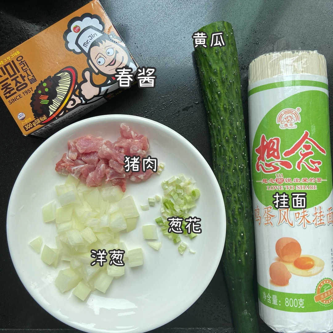 猪后腿肉 或者五花肉 洋葱 葱 鸡蛋面 黄瓜(第二次做加了包菜 更好吃啦)