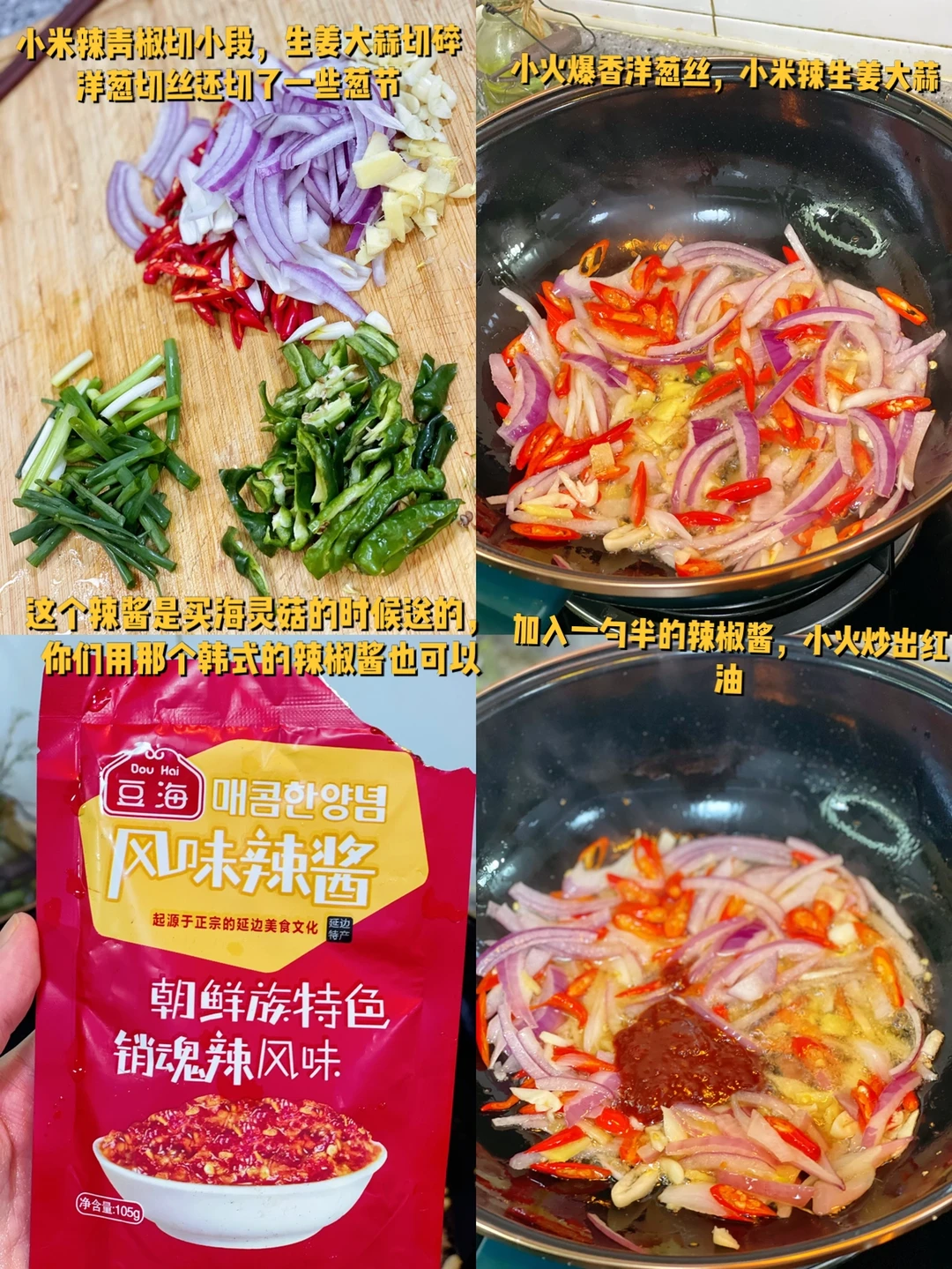 4. 小火爆香洋葱丝,小米辣生姜大蒜