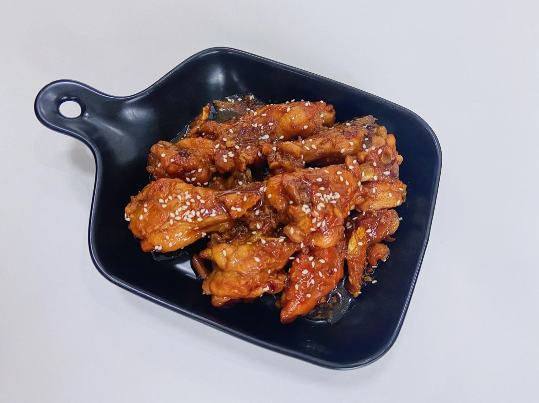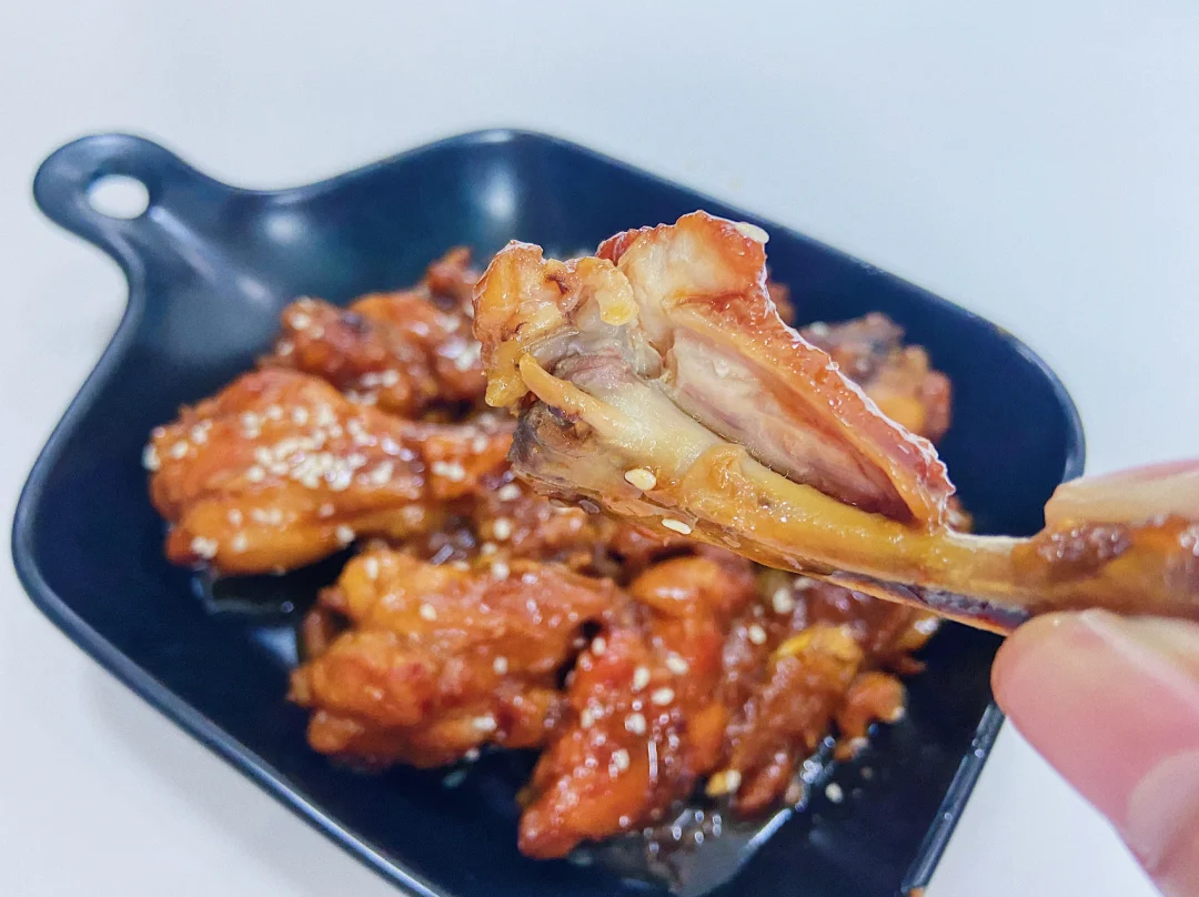 3️⃣做照烧 直接连小鸡腿带汤汁一起倒进炒锅里 开盖大火收汁就可以 还剩一点点汤汁 很粘稠的状态就可以了 收汁的时候记得翻拌均匀小鸡腿 让照烧汁裹满哦❤