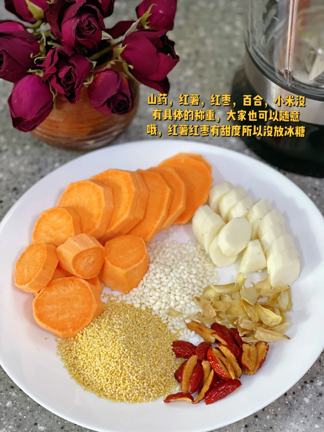 1. 山药,红薯,红枣,百合,小米没有具体的称重,大家也可以随意哦