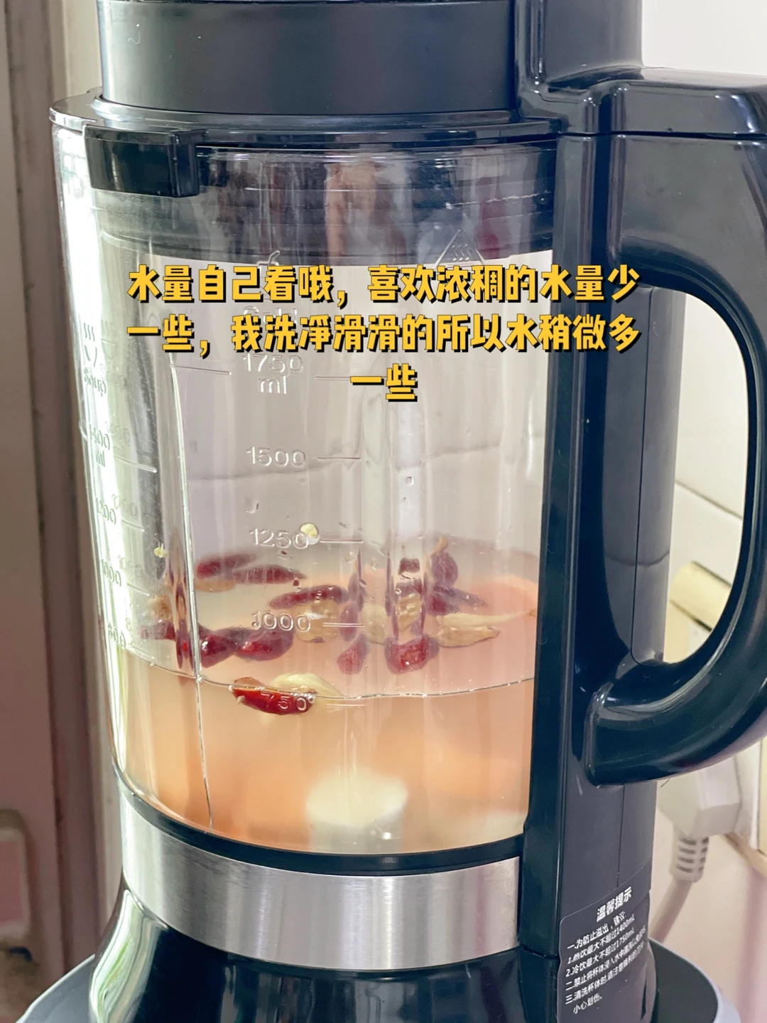 3. 水量自己看哦,喜欢浓稠的水量少一些,我洗净滑滑的所以水稍微多一些