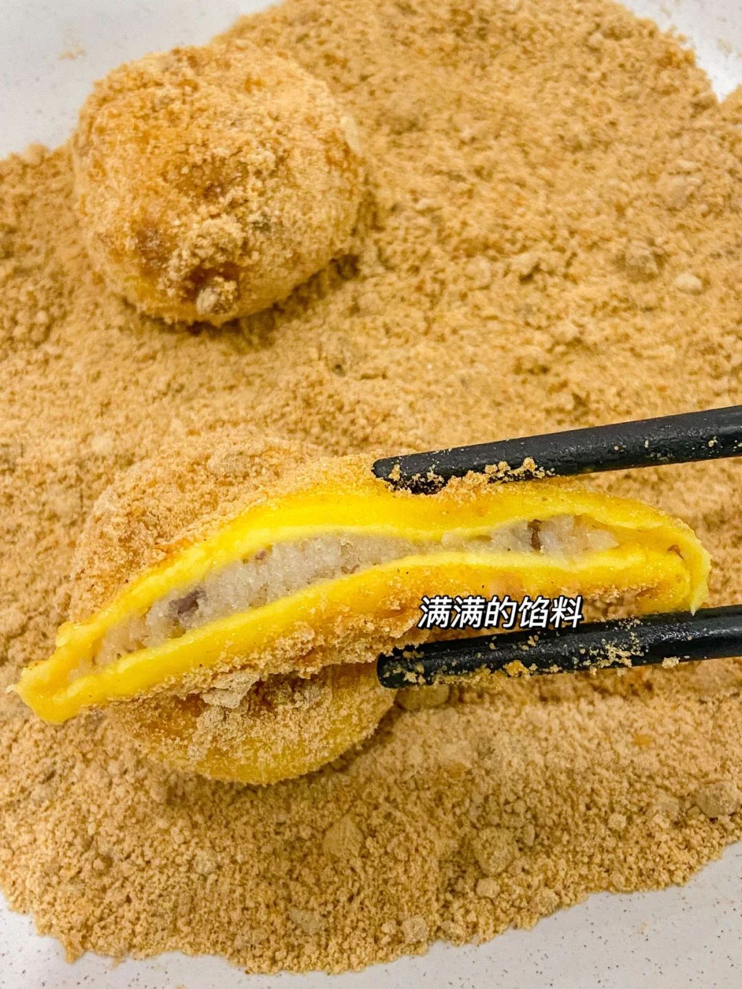 做法是so easy 的啦 几分钟就可以完成 黄黄的煮的时候还好Q好可爱 会爆浆的的汤圆沾上黄豆粉一整个满足 嫌不够甜可以加点红糖😋