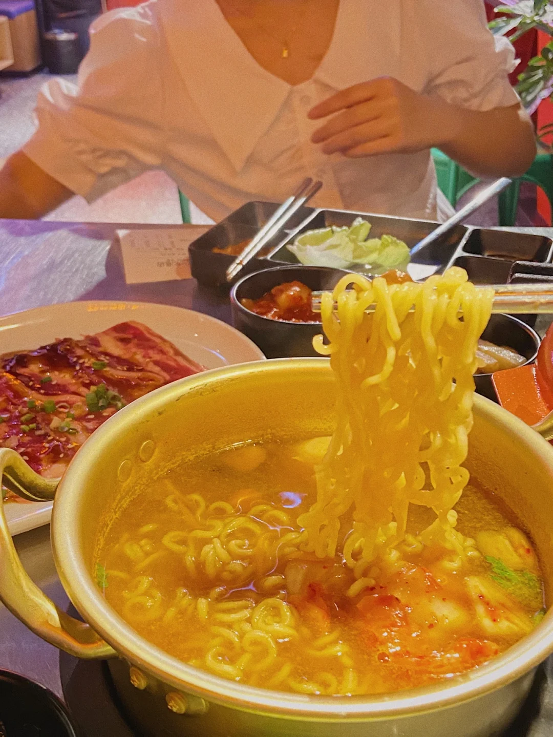 就是农心辛拉面的味道 但是分量没有以前多 以前的配菜也会多一些 还有金针菇 这次没有金针菇