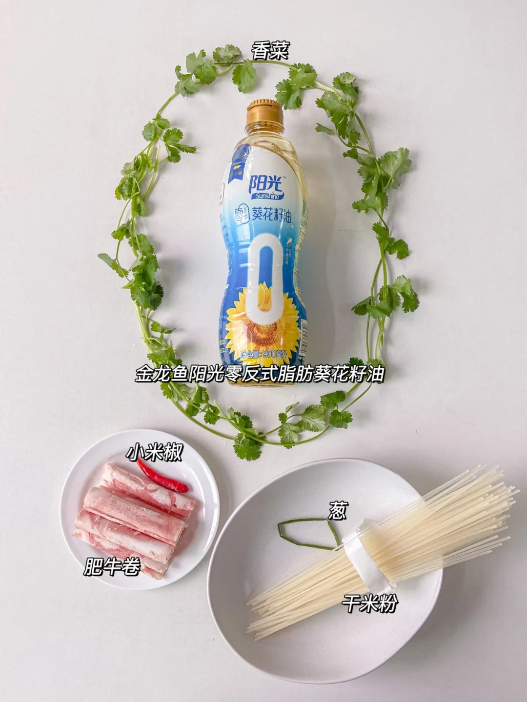 米粉 肥牛 葱花 小米辣 香菜 金龙鱼阳光零反式脂肪葵花籽油