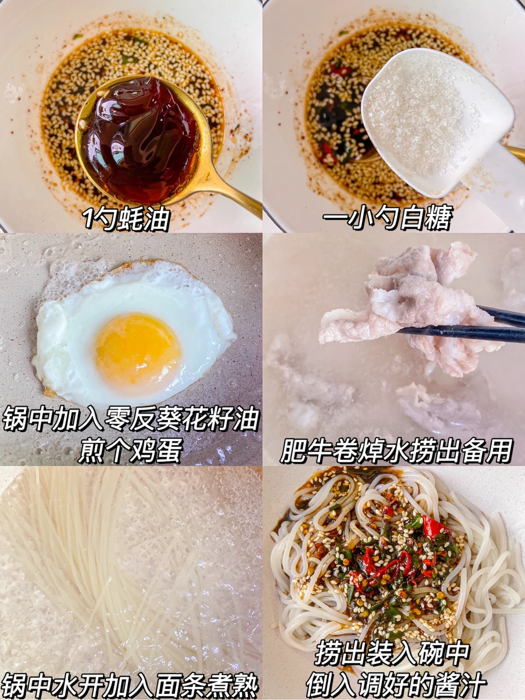3️⃣锅中加零反葵花籽油煎个鸡蛋 肥牛卷焯水捞出备用