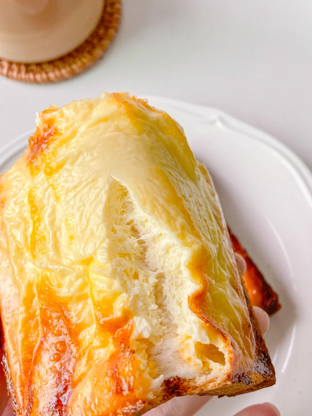 每次去超市我都会囤好几提吐司 每天早餐换着花样的做吐司吃☺️ 今天做的是酸奶布丁吐司——这就是0糖版伪岩烧乳酪吐司呀😌