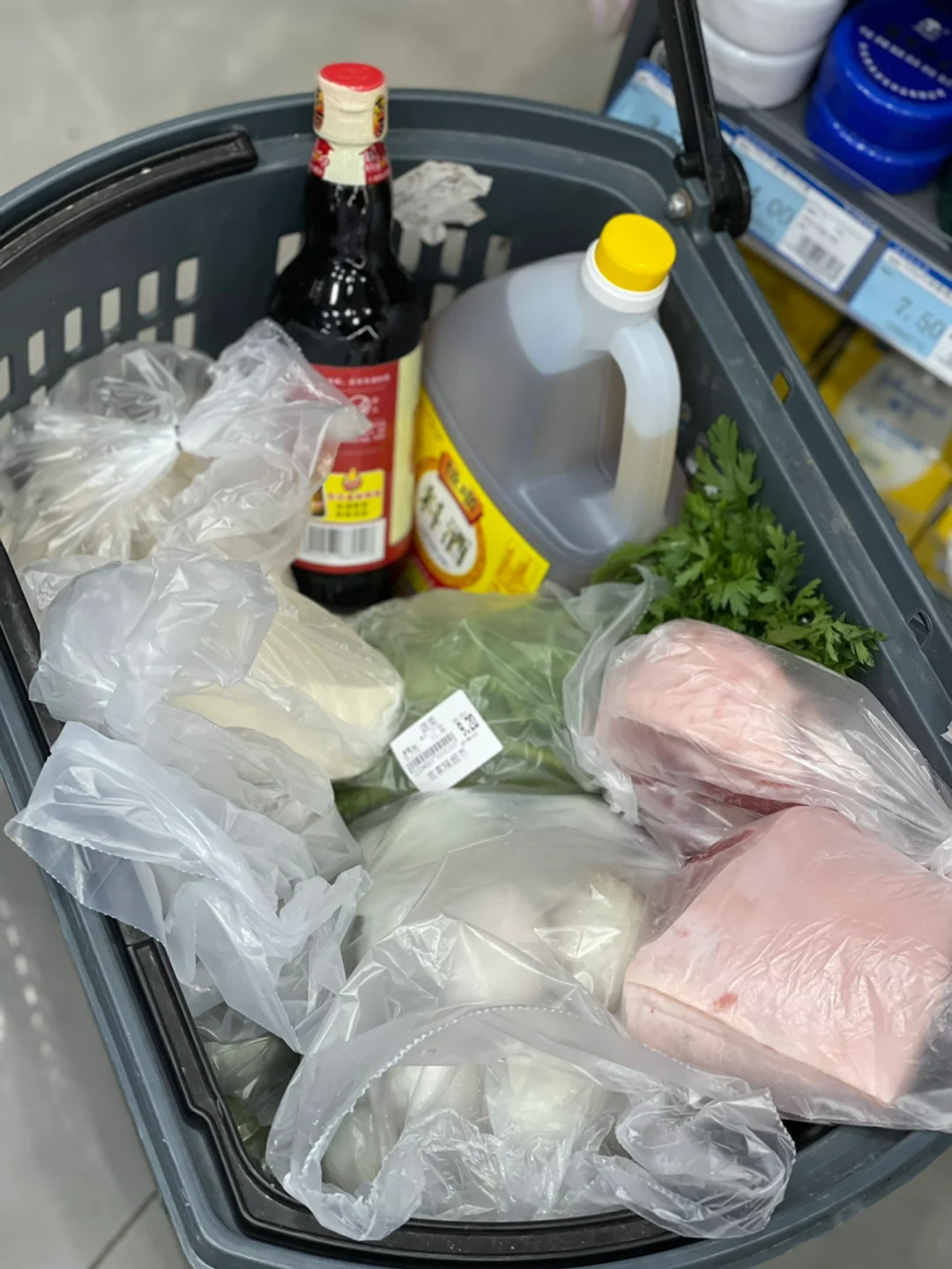 从昨天下午开始,大家打招呼的第一句话就是你囤菜了吗?买盐了吗?买酱油了吗?买纸了吗? 还有同事跟我说啊,你赶紧去屯一点吧,我去楼下油米酱油盐什么都没有了,连玉米淀粉都买不到了[允悲][允悲]今天买菜结账的时候,旁边的一个阿姨说昨天开市客大家居然在抢冰箱,还好平时做烘焙去年入手了一个商用大冰箱,还有一个小一点的冰箱,屯菜足够了[偷笑]虽然前几天也去囤了一些,但有备无患,还是又去买了一些特别是生姜大蒜