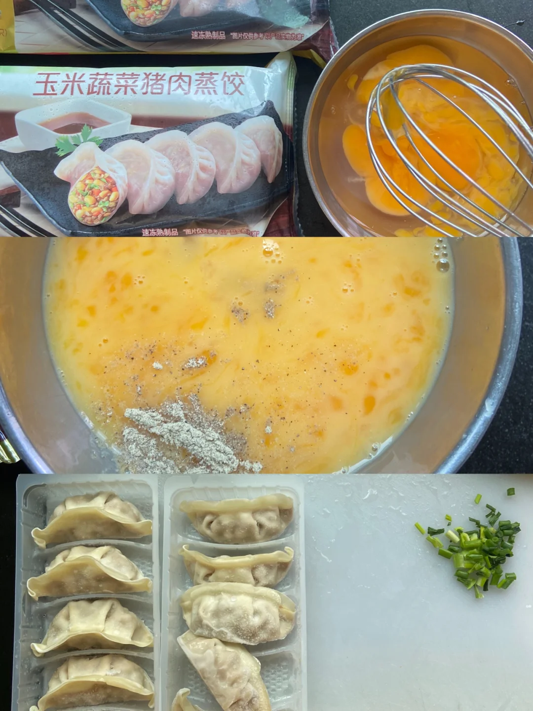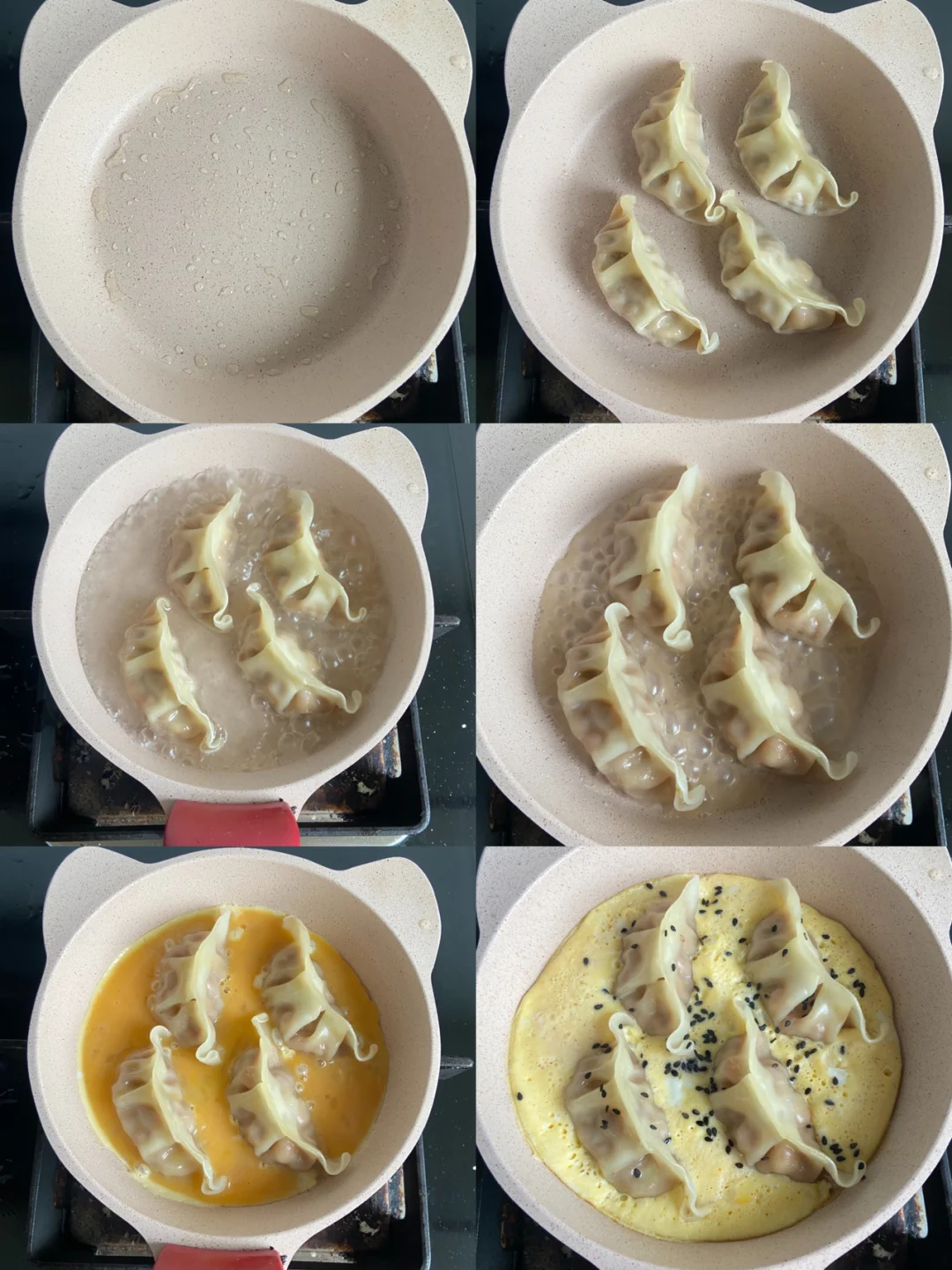 颜值超高的抱蛋煎饺来了 不仅拍照好看 而且太好吃啦 那么好看我都舍不得吃了 赶紧来做起来吧[害羞R] 准备食材: 饺子 鸡蛋2颗 葱花 制作方法: 1️⃣鸡蛋加少许盐 白胡椒粉提鲜(没有可不放) 2️⃣锅里刷油 放入煎饺摆好小火煎到滋滋响倒入水 没过饺子一半 3️⃣小火烧到水差不多干了倒入蛋液 撒上黑芝麻定型 撒上葱花即可 是不是超级简单呀 蘸点醋或者辣酱 番茄酱都可以呀 赶紧安排吧 |美食教程|今天吃什么|花样早餐|营养健康早餐|日常美食|宅家美食DIY | 我的美食日记|