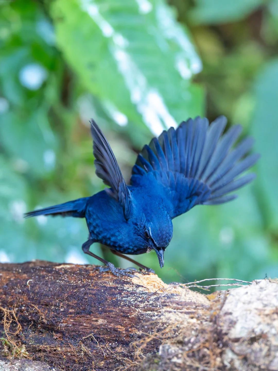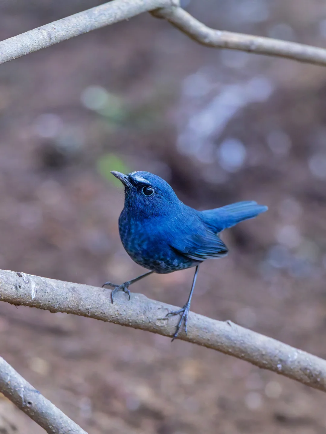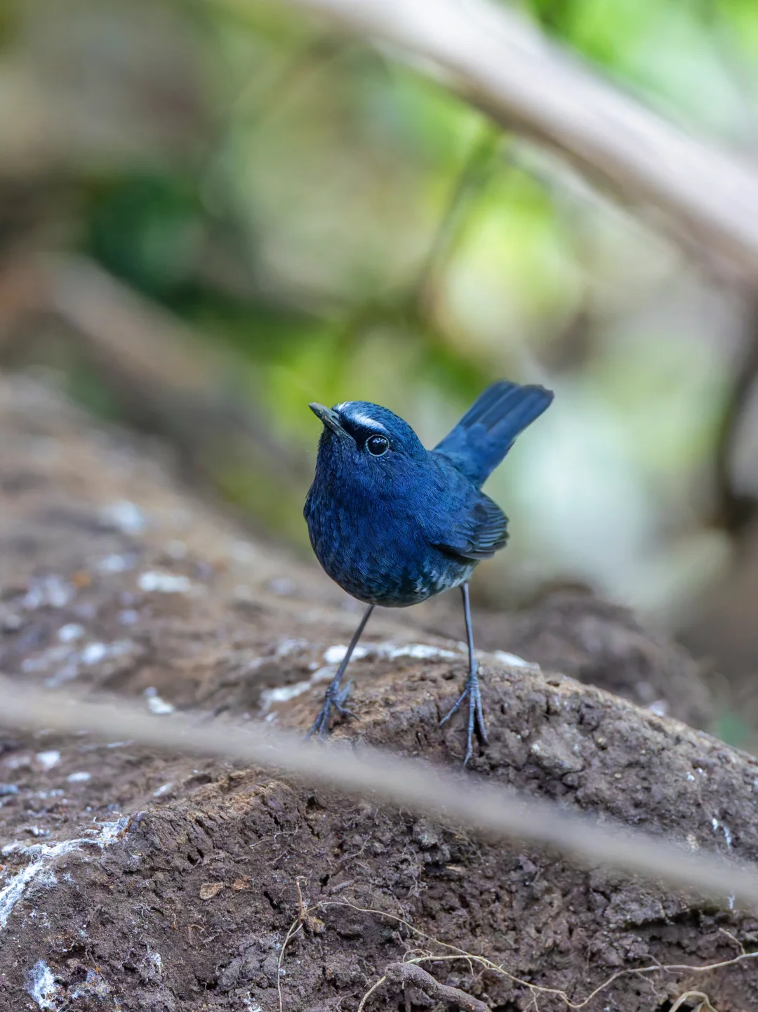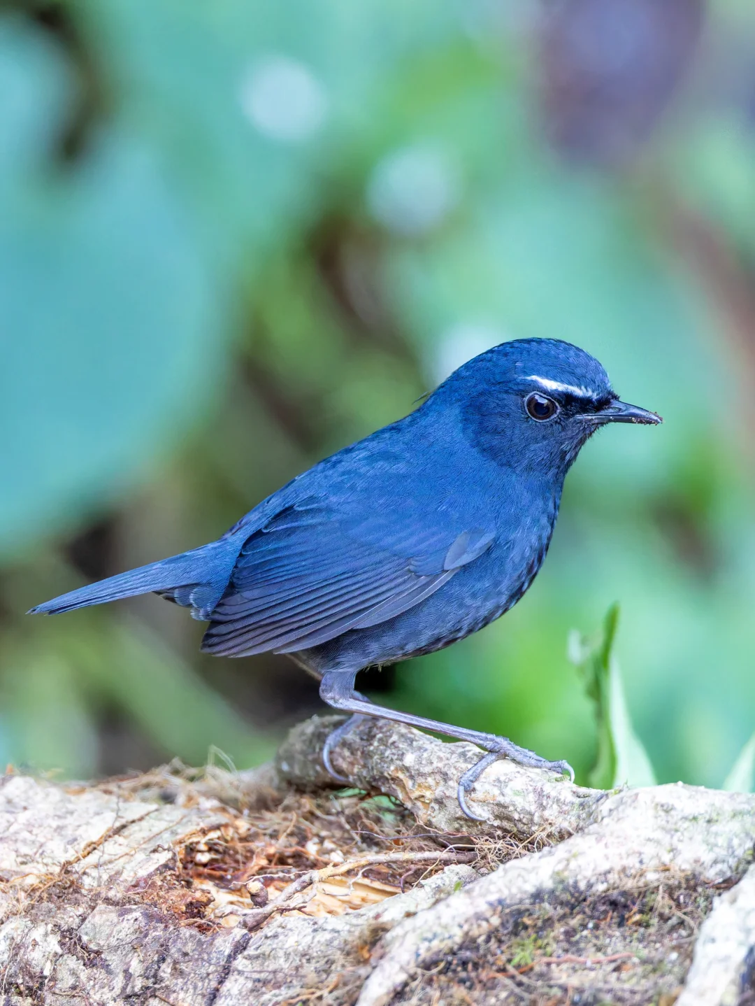 原创拍摄于2026.01 喜山短翅鸫,或者叫喜山蓝短翅鸫,Himalayan Shortwing,雀形目鹟科短翅鸫属。以前被认为是蓝短翅鸫的亚种,IOC9.1从蓝短翅鸫分拆,确实是分布在喜马拉雅山脉至我国的云南,叫喜山短翅鸫或者喜山蓝短翅鸫都很合适。 这次在百花岭就看见喜山短翅鸫的雄鸟,全身比较均匀的暗蓝色,有白色的眉纹。我非常喜欢这种暗暗的蓝色。 这种小鸟也就10-13厘米长,20克左右重,很小,喜欢在浓密植被中跳动,像一个小精灵一样,虽然给拍摄增加了难度,但是让人更加喜欢这种活泼美丽的小鸟了。