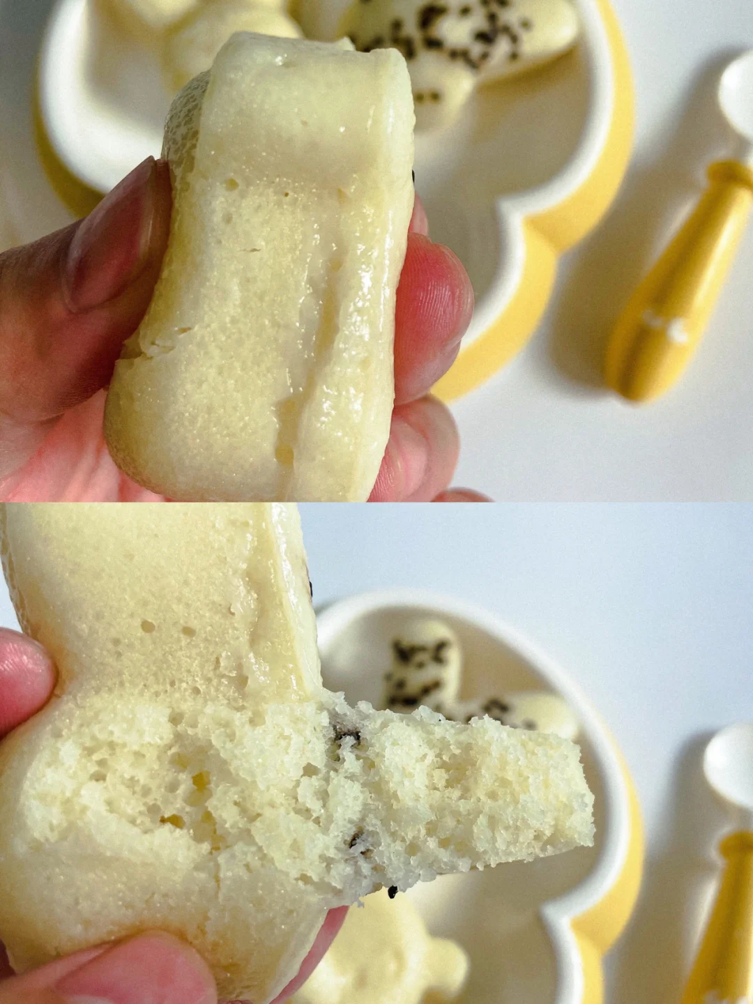 十个月的宝宝可以添加发糕咯 Q弹绵软的大米糕来了 米香奶香十足 简单又好吃 还可以锻炼宝宝咀嚼能力 是时候给宝宝换个主食吃吃咯🧁