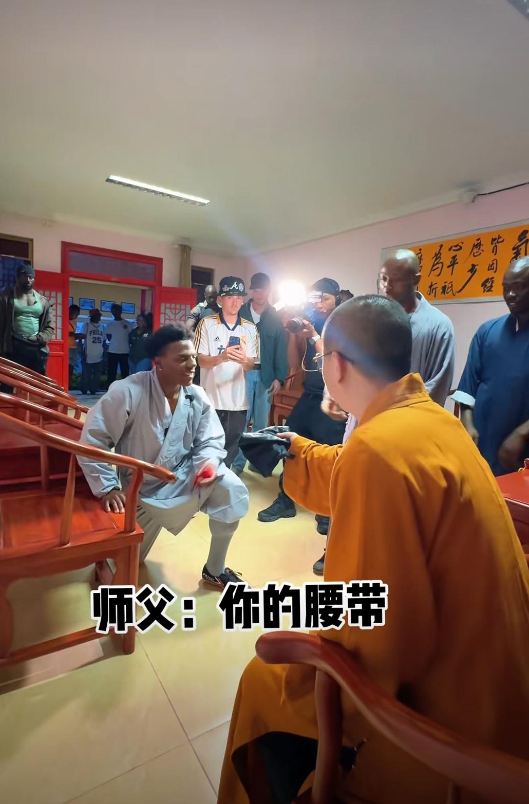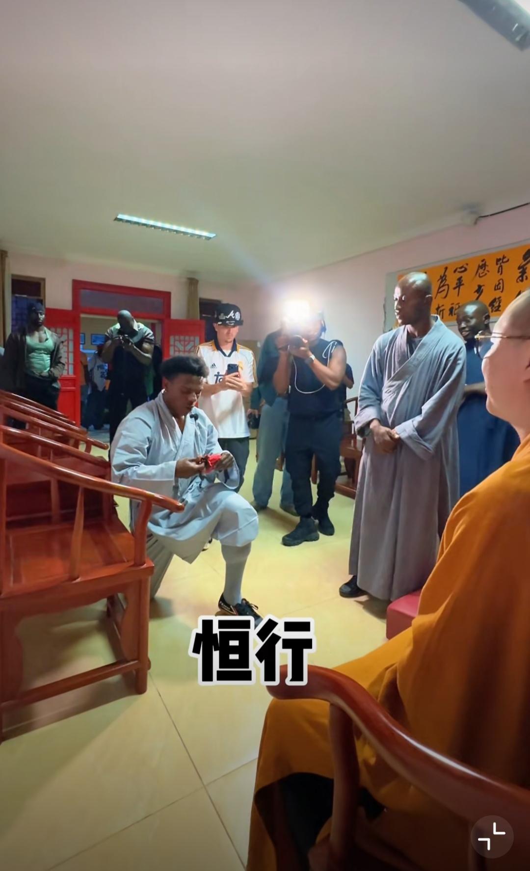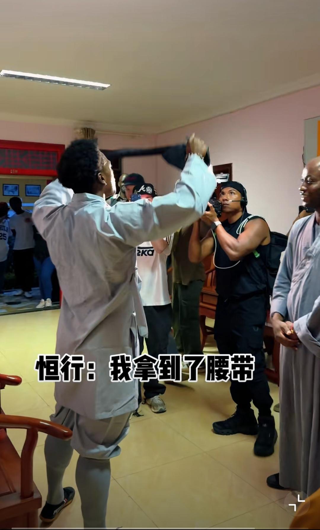 甲亢哥在非洲找到了属于他的组织了。 甲亢哥Speed来到赞比亚少林寺,正式皈依少林,成为少林第35代弟子,赐法名释恒行。当大师兄说出“恒行”两字时,甲亢哥念成了“横行”。 他还知道找师父要黑腰带,他师父给了他一条。看师父这外貌背影,应该是个中国人。 如果他的法名叫“释必得”,那他这法号和他的英文名字Speed,就高度重合了。