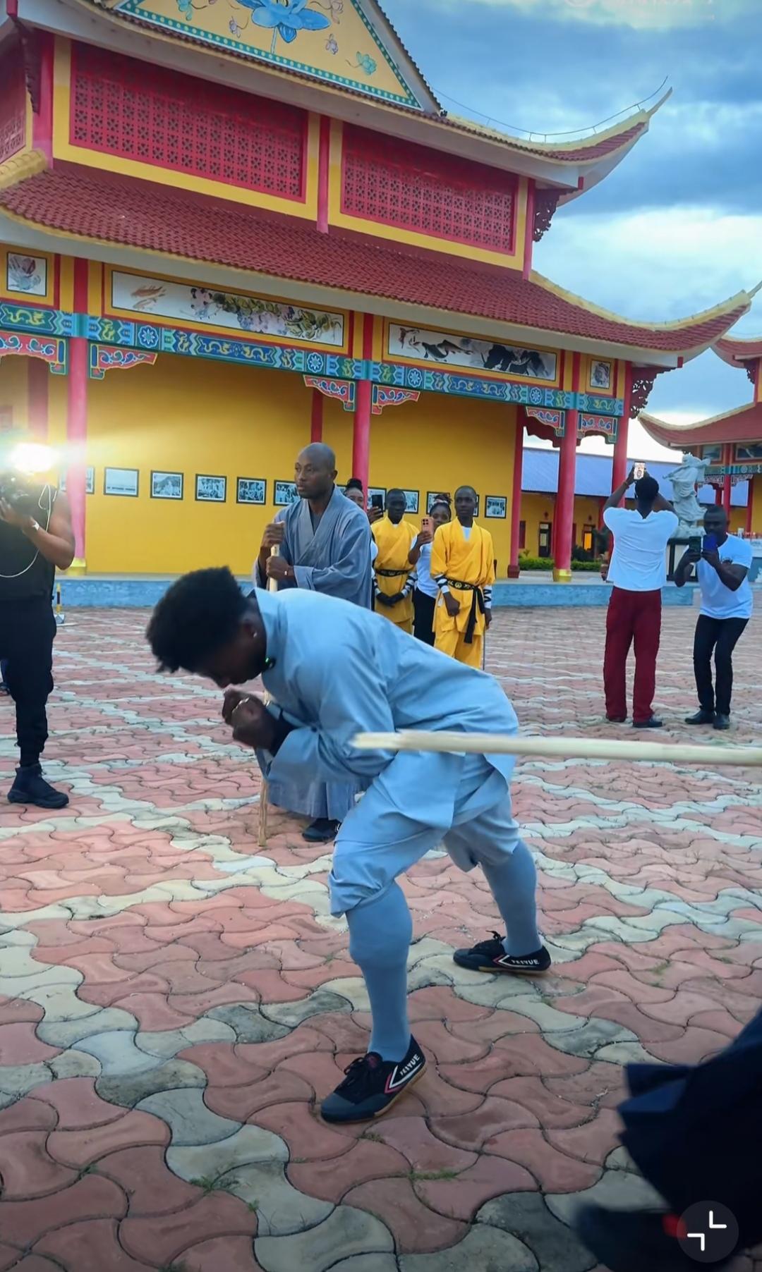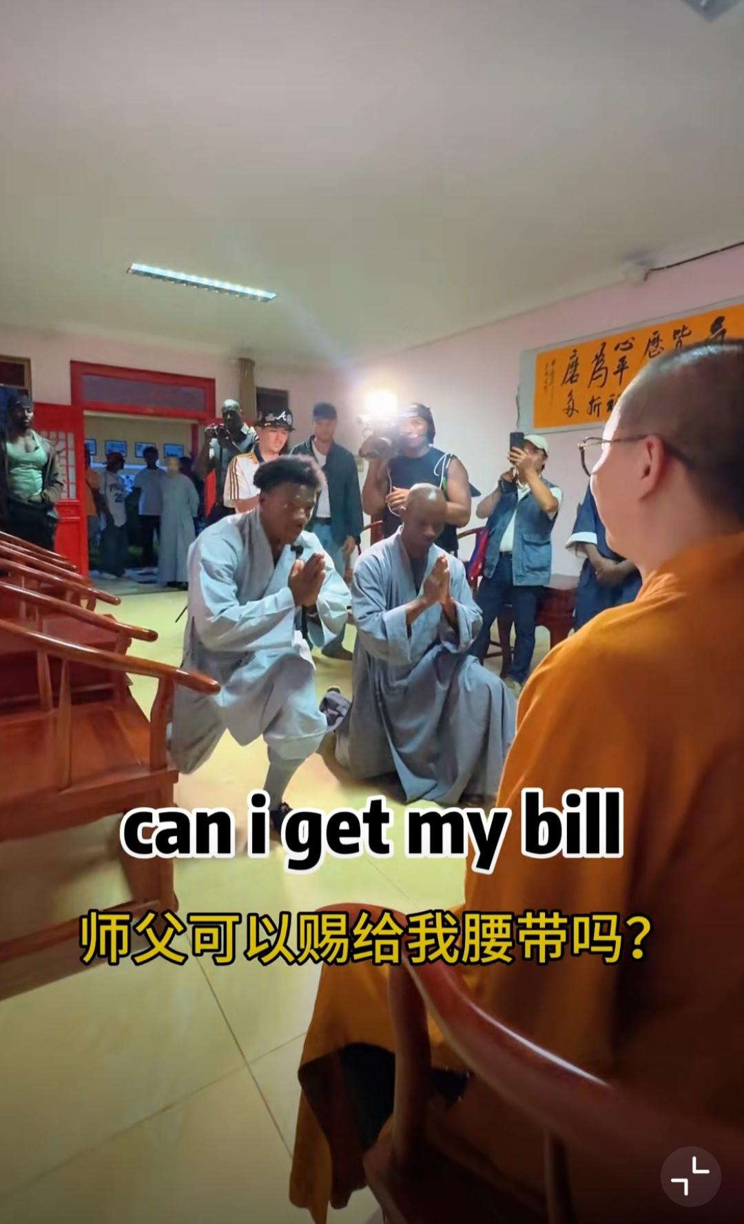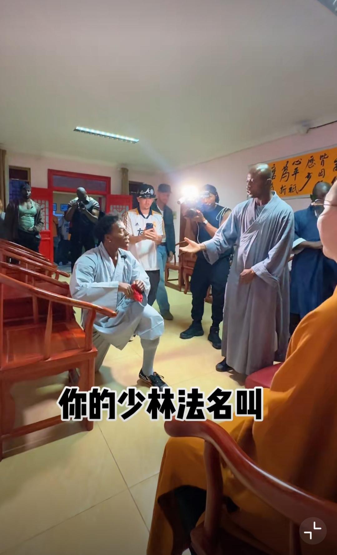 甲亢哥在非洲找到了属于他的组织了。 甲亢哥Speed来到赞比亚少林寺,正式皈依少林,成为少林第35代弟子,赐法名释恒行。当大师兄说出“恒行”两字时,甲亢哥念成了“横行”。 他还知道找师父要黑腰带,他师父给了他一条。看师父这外貌背影,应该是个中国人。 如果他的法名叫“释必得”,那他这法号和他的英文名字Speed,就高度重合了。