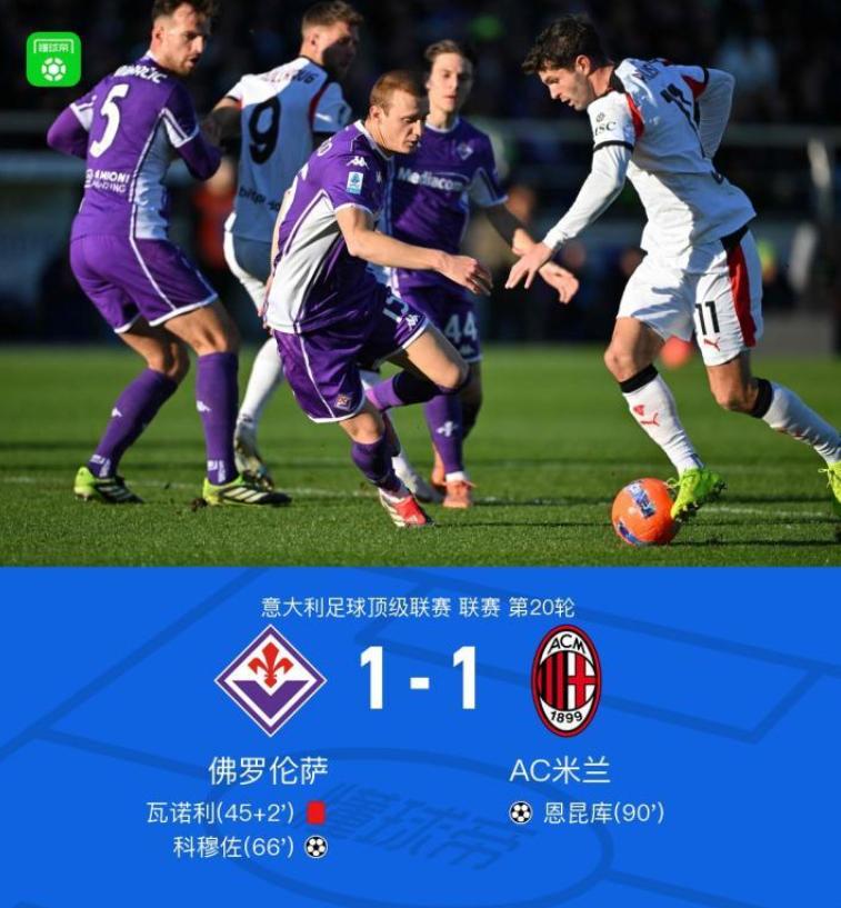 笑死,又翻车送温暖了!意甲第20轮排名第二的AC米兰客场挑战排名倒数第二的佛罗伦萨,第90分钟AC米兰绝平,最终双方战成1:1。 用心艰苦挣来的单线作局面,面对保级队AC米兰竟然搞起大轮换,这不又继续失分了。AC米兰已连续两场被保级队逼平了,先赛一场落后榜首的国际米兰2分排名第2。 期待晚赛场的国际米兰能在主场全力拿下那不勒斯,以拉开积分差距。