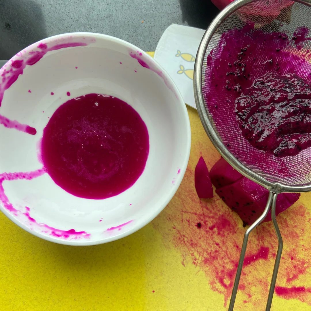 2️⃣火龙果用搅拌机打成泥 用筛子过滤 取20克