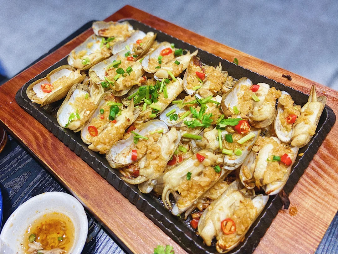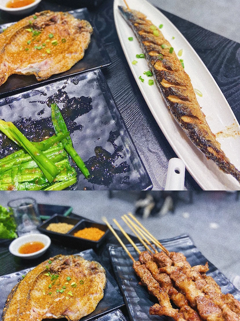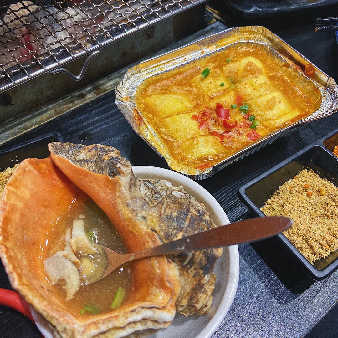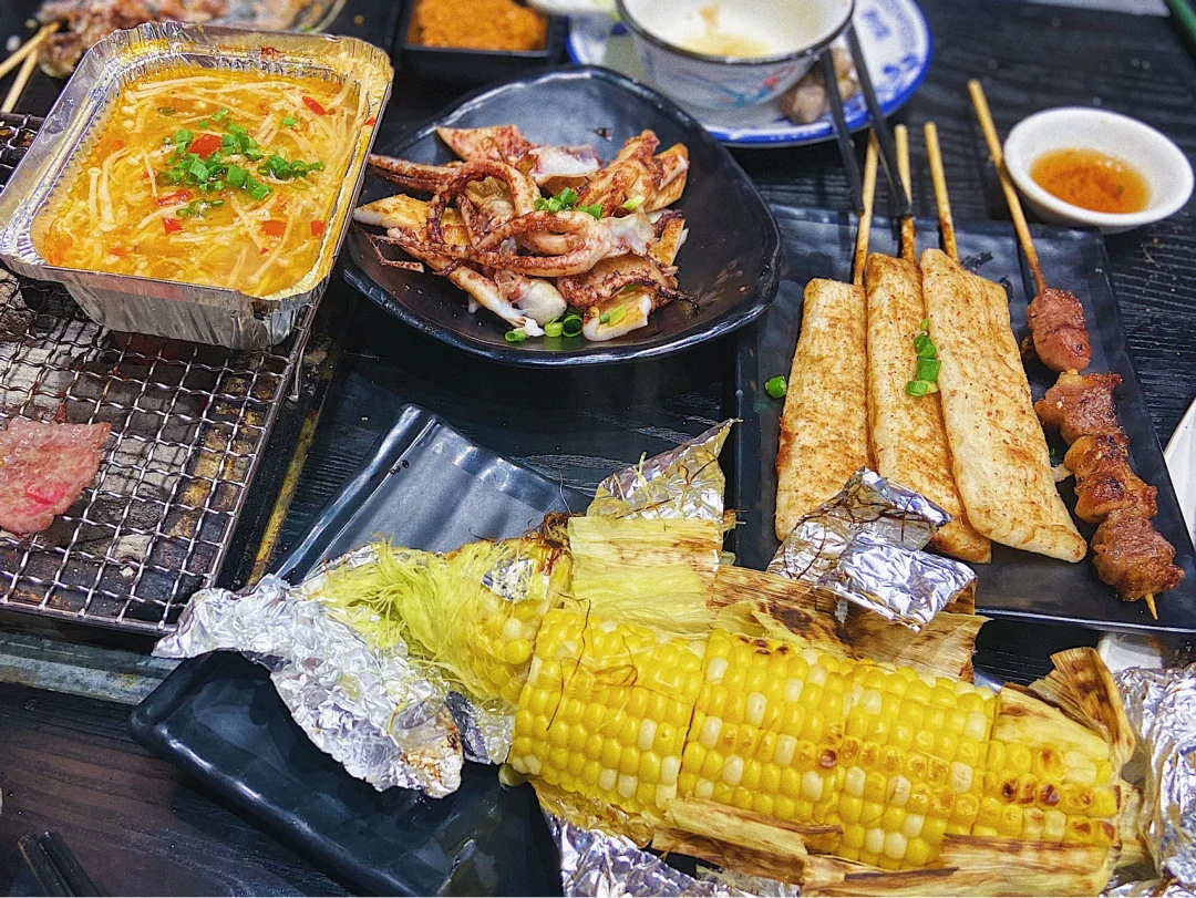 推荐菜:烤牛肉 钉螺 年糕 鸡翅膀 羊肉串 日本豆腐 铁板蛏子 韭菜[色色R]