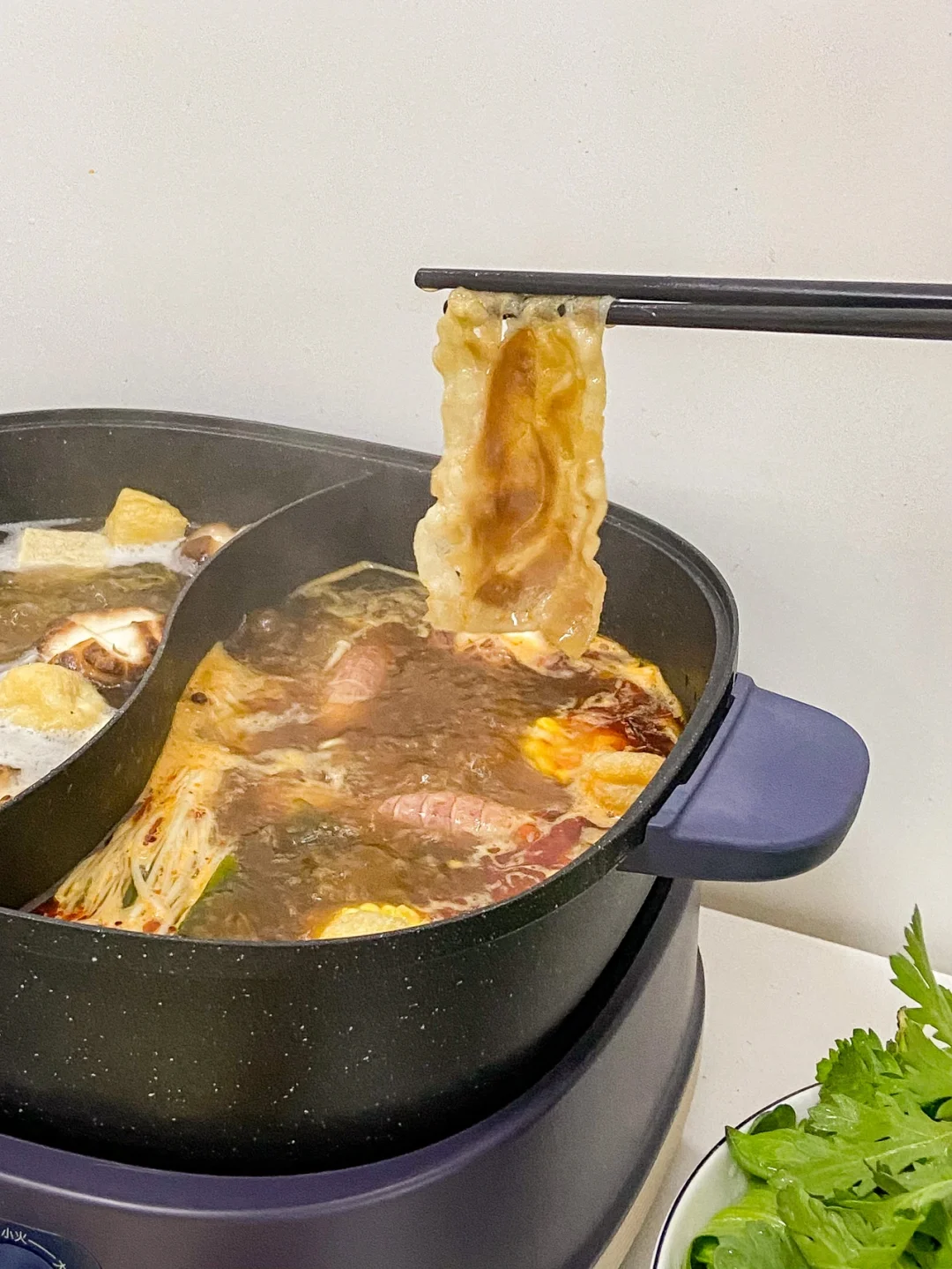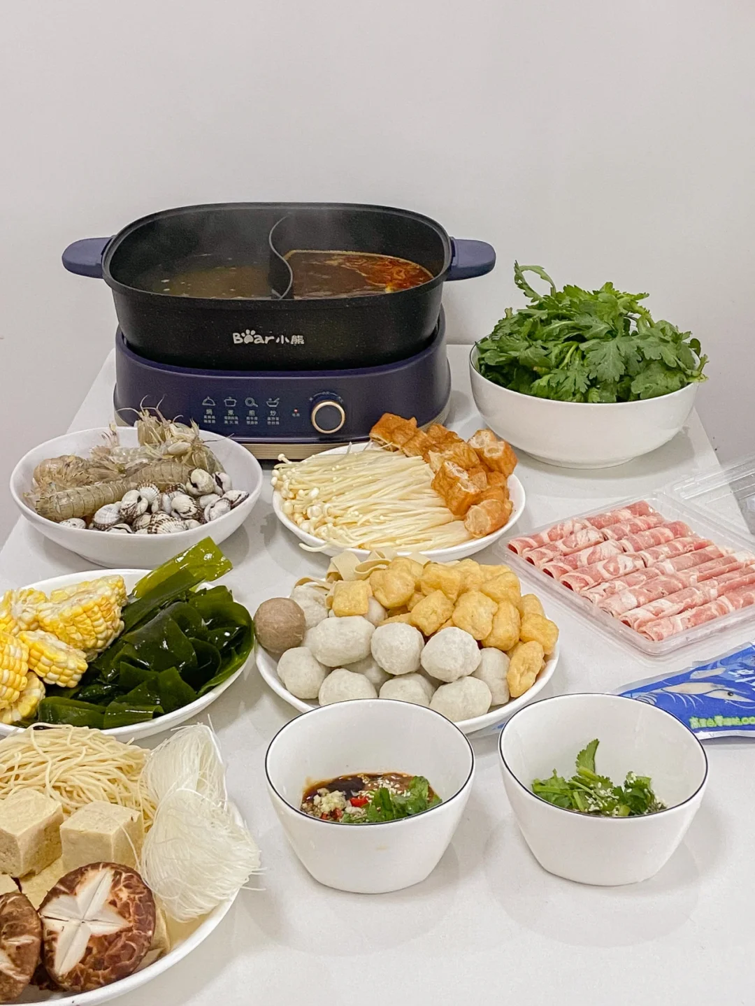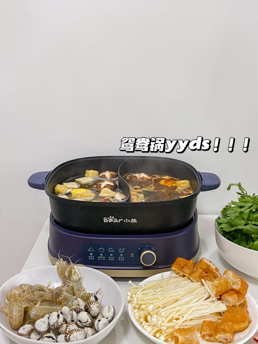 一到冬天我们家几乎每天都是吃火锅 可是家里有娃的我们每天只能吃清汤锅☹️爱吃辣的我只能单独调味😭 直到我get了小熊鸳鸯火锅~实现火锅自由😊