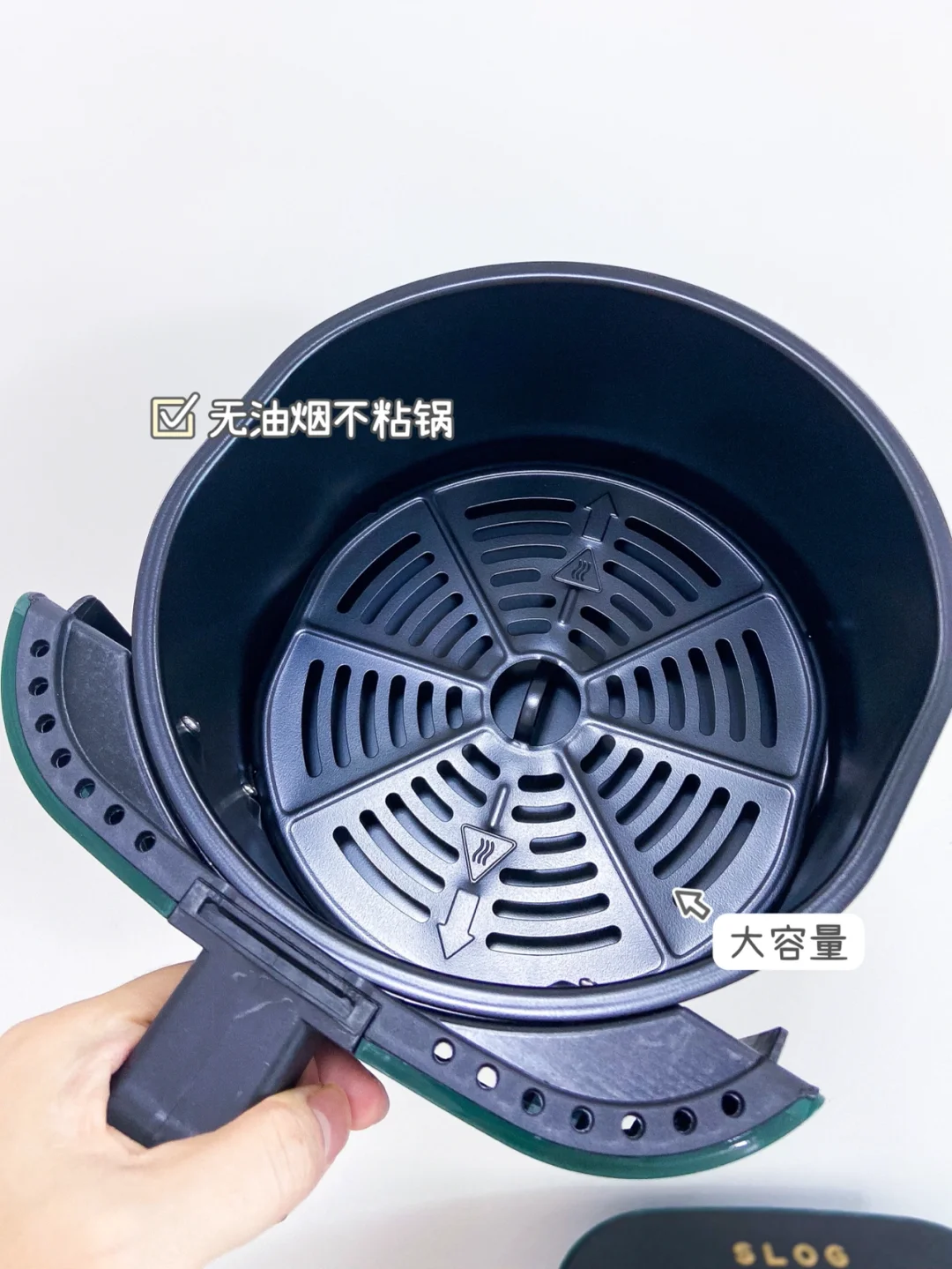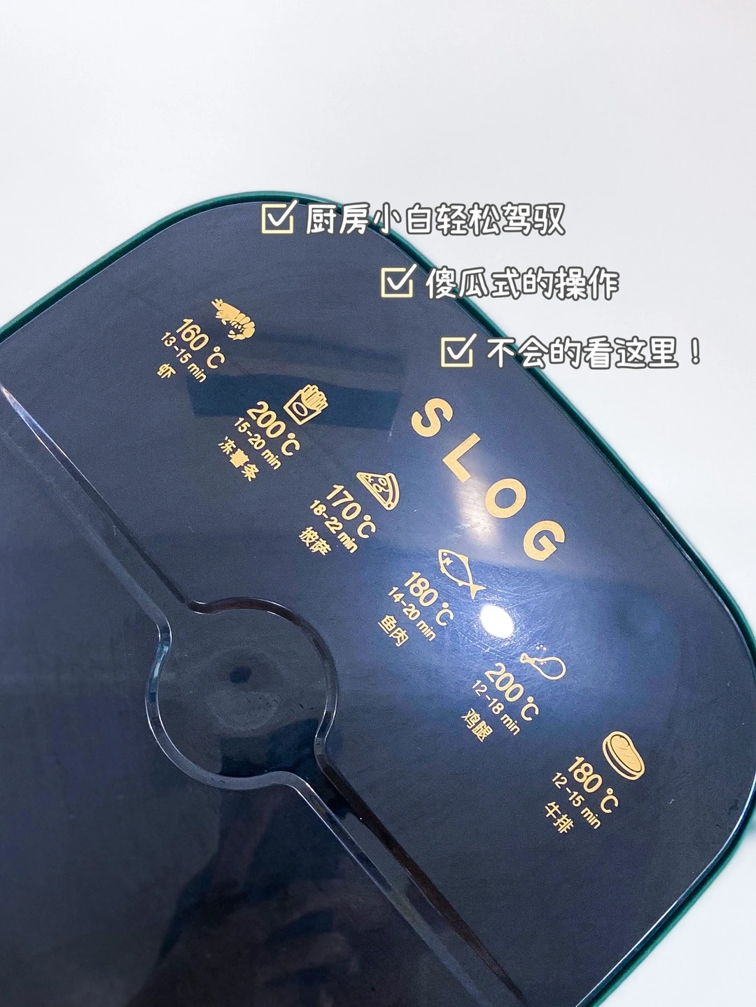 这款Slog空气炸锅5L的大容量 顶上还有预设菜单 傻瓜式的特简单 厨房小白也可以轻松驾驭 无油烟而且不粘锅 颜值也很棒 打算送一台给老妈 还送了菜谱 下次做什么我都想好啦 🤫