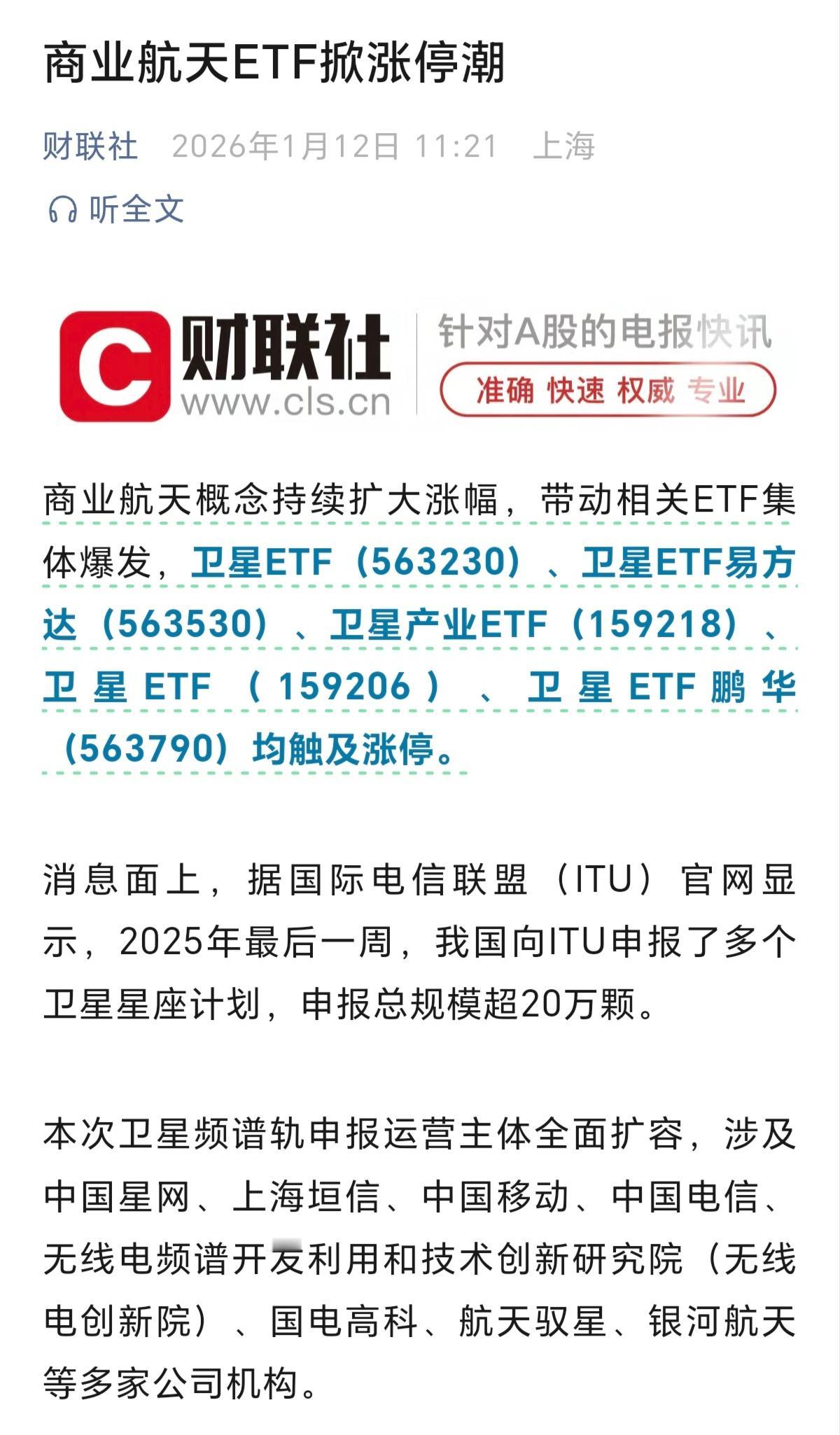 商业航天太疯狂了,连ETF都涨停了,现在的商业航天就是涨,涨到你从不相信,到相信