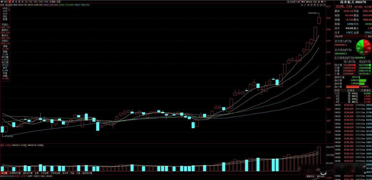 A股要起飞?三大主线暗流涌动,外资跑步入场! 说实话,最近这市场一开年就有点不一样了。节后头几个交易日大盘一路逼空向上,很多人还在犹豫是不是该追,结果你发现,外资已经在港股那边悄悄砸了几个亿。1月第一个交易日,摩根大通光是在港交所就买了超7亿港元的票,这不是试探,是真金白银往里冲。更别提在美国上市的那些中国科技ETF,像景顺中国科技、锐联中国科创,钱哗哗地往里进。你说外资为什么老盯着中概股和港股?A股不是更便宜吗?道理也简单——进不来啊!QFII、陆股通都有额度限制,想大举建仓没那么容易。但港股一强,A股迟早坐不住。 就在这种氛围下,1月10日第三十届中国资本市场论坛开了个会,听着像是务虚,其实干货不少。吴晓求在会上直接放话:中国股市已经发生根本性变化。这话不是随便说的。他提到的“三端改革”——资产端、投资端、制度端,每一条都戳到了痛点。特别是那句“对财务造假者要从行政处罚转向刑事追责”,听着就解气。现在的问题不是没规矩,是违规成本太低。要是以后搞“雷”的人真要坐牢赔钱,谁还敢乱来?黄奇帆也出来说了句实在话:让银行、社保、保险这些大资金牵头搞股权引导基金。你想啊,现在企业融资太依赖贷款,压力全在银行身上,如果能通过基金形式把长期资金引入股市,慢慢把直接融资搞起来,这才是治本之策。 市场最敏感的板块反应比谁都快。上周末消息炸了:中国向国际电信联盟提交了20.3万颗卫星的申请,两个星座加起来就19万多颗,主申报方叫无线电创新院,名字听着陌生,但能量不小。这可不是画大饼,同期还有消息说国内首个海上火箭回收基地马上要开工。一边是我们自己猛推商业航天,另一边SpaceX也被美国批准再发7500颗星链卫星。太空竞赛已经不是科幻片了,是实实在在的基建角力。反映到A股,商业航天板块从12月就开始走主升浪,最近更是加速上扬,上周五涨得都快飘了,5日线拉得太远,短期难免晃一晃。但资金数据摆在那儿:过去一个月,超60家公司被主力盯上,这种级别的集中加仓,几年都见不到一次。 这边厢机构还在猛扫货,那厢AI智能体也不甘示弱。阿里旗下的通义千问你可能用过,12月份它的模型下载量直接干掉了第二到第八名的总和,现在开源模型超400个,衍生模型破18万,全球第一。谷歌Gemini的数据也很猛:日活6200万,环比涨17%,访问量同比翻了四倍多。行情这东西,有时候就是等一个引爆点。AI软件这块去年沉寂太久,调整得也够充分,元旦后机构突然发力,6家公司被集中买入,尤其是利欧股份,机构连续三天买进,游资也跟着上了1.99亿。中山东路、章盟主、作手新一这帮“熟面孔”集体杀入昆仑万维、易点天下、引力传媒,动作清一楚。 再看存储芯片那边,更是杀气腾腾。闪迪这回玩狠的——要客户先付全款,锁定未来一到三年的供货,还得接受价格上调超100%。你敢信吗?连三星、SK海力士也在调价。这哪里是涨价,简直是抢购。企业级SSD的3DNAND芯片成了香饽饽,行业眼看要进超级周期。A股这边江波龙、兆易创新这些票,技术形态走得挺稳,上周三跳空高开后就没怎么回调,主力控盘明显。 周五那天,机构和游资罕见同步。机构净买入23只,卖出18只,东阳光一天就被三路机构吃下超10亿;游资也没闲着,中山东路、作手新一齐刷刷扫货。有意思的是,两边都对准了商业航天和AI智能体,作手新一直接往航天电子扔了7.66亿。但机构悄悄摸进了创新药和零售,有点避险的味道。你说这行情能走多远?我不知道,但我看见钱正在往对的地方流。
