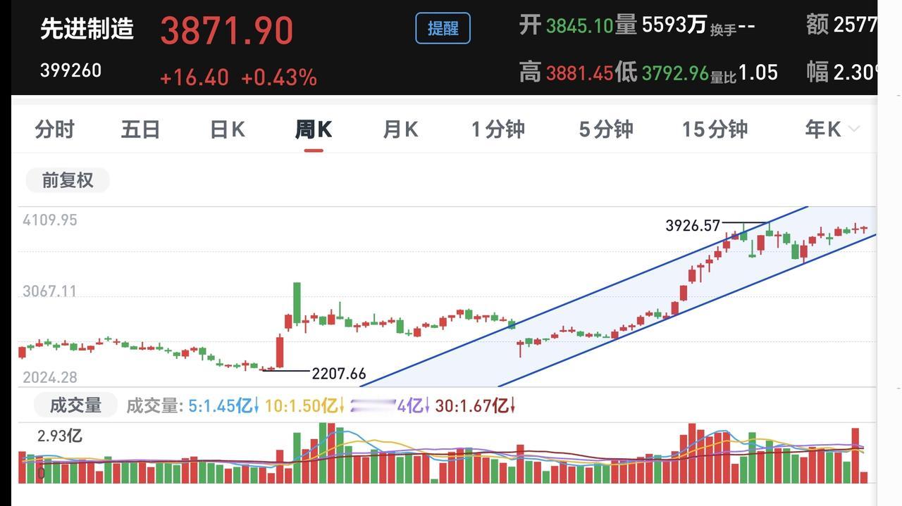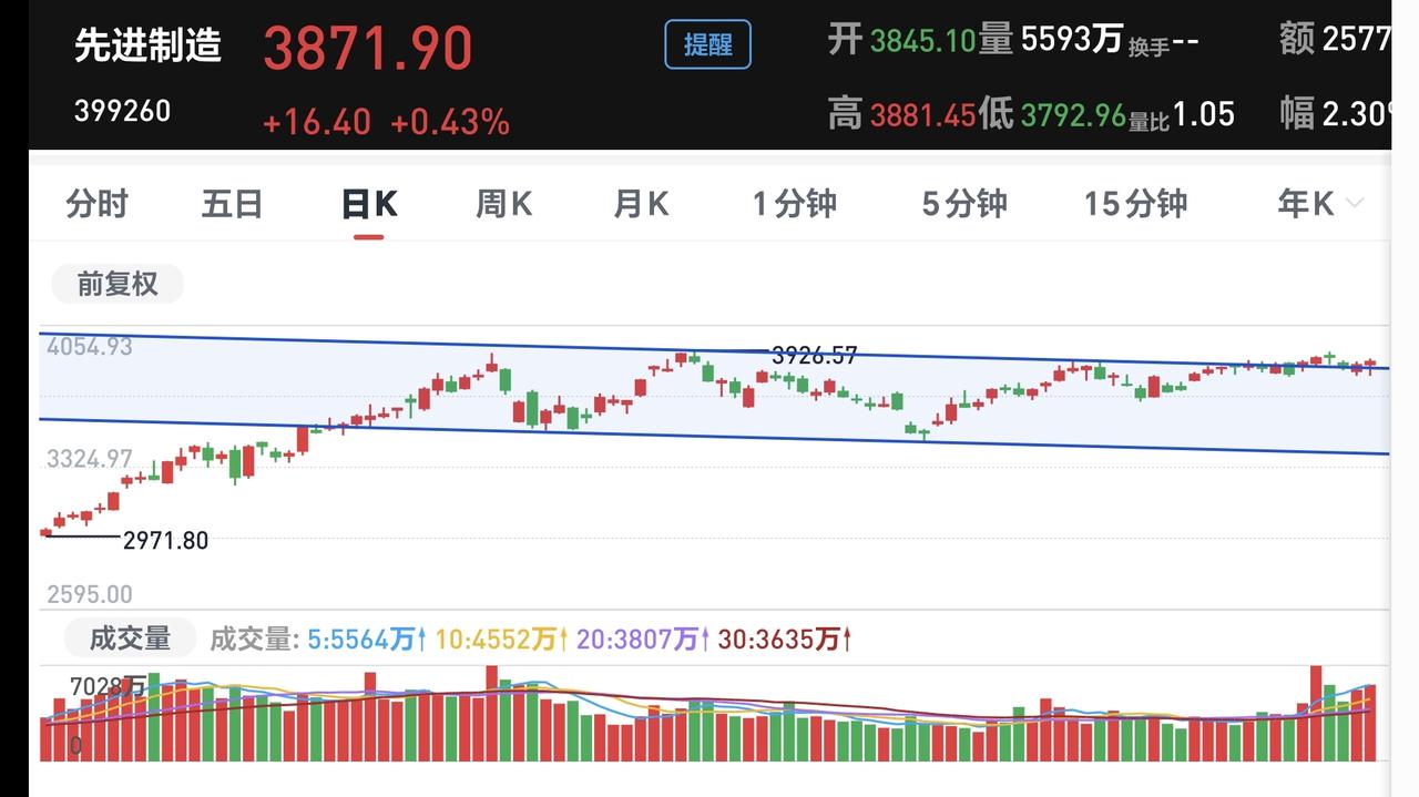 基金:这个板块的基金给了我一个大惊喜 欧洲市场现在是涨跌不一,德国上涨了0.33%,英国下跌了0.05%,法国下跌了0.26%,涨跌幅度都很小。 香港市场今天是上涨,恒生指数上涨了1.44%,国企指数上涨了1.90%,恒生科技指数上涨了3.10%。 图3是今天基金的加仓排行榜,图4是今天基金的减仓排行榜,图5是今天基金的持有人数飙升榜,图6是今天基金的加仓人数和减仓人数,今天加仓65930696人,今天减仓31366296人,今天加仓人数超过了减仓人数。 持有的基金净值已经大部分更新,上涨幅度最大的三个板块是:AI应用,先进制造板块,军工板块,下跌的只有医疗板块和上证50板块净值整体上涨了11690元。 持有的先进制造板块基金万家,净值更新上涨了5.35%,大幅度超过了收盘时候估值的上涨幅度,也大幅度超过了先进制造板块0.56%的上涨幅度,见下面的截图9。 先进制造板块今天加仓排行榜见下面的截图11,持有人数排行榜见下面的截图12,排名第一的都是国投瑞银新能源。 我们来看一下下面的截图13,这是先进制造板块日K线图,从图中可以看出,我画了两条倾斜向下的斜线,这是先进制造板块日线级别下跌通道,今天的上涨突破了这个下跌通道的上轨,也就是说,先进制造板块日线级别下跌趋势有可能已经被改变。 我们来看一下下面的截图14,这是先进制造板块周K线图,从图中可以看出,我画了两条倾斜向上的斜线,这是先进制造板块周线级别上涨通道,现在的位置处于这个上涨通道内,也就是说,先进制造板块周线级别处于上涨趋势中,先进制造板块大方向向上,持有的人可以继续持有,除非跌破这个上涨通道的下轨,才可以考虑要不要止盈出来观望。 我每天都会分享我的观点,我的观点只代表我个人的看法,不能作为你操作的依据,据此操作后果自负。