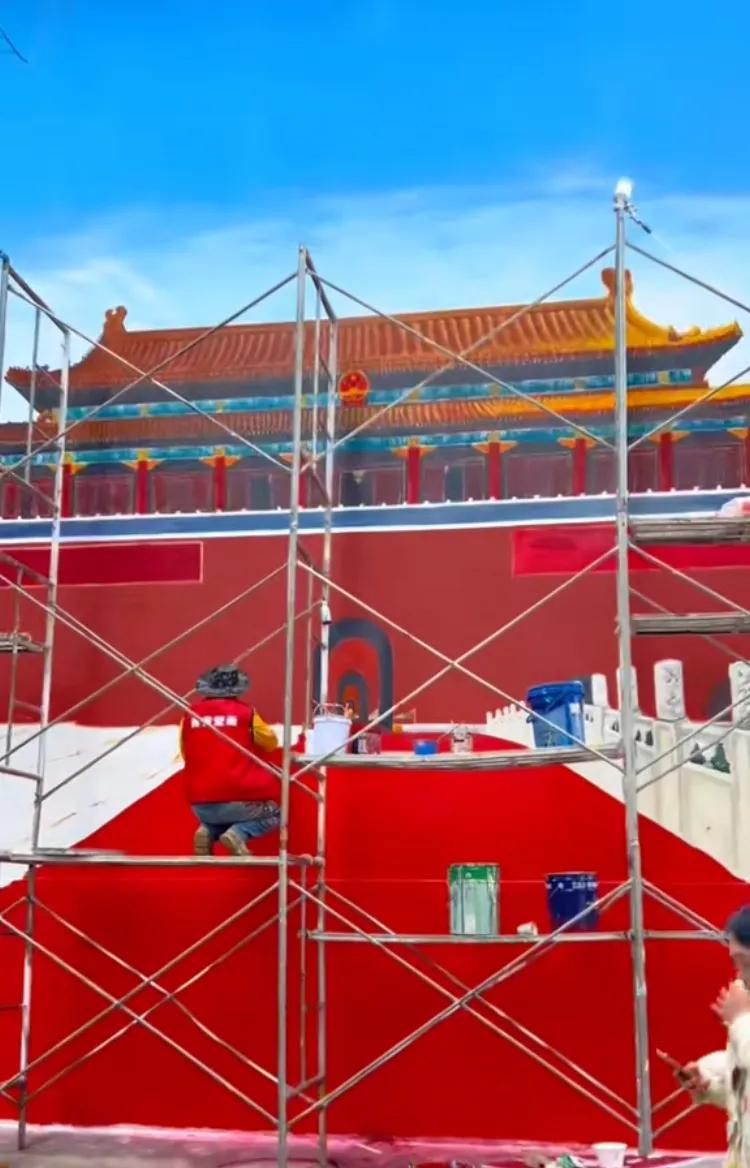 求求各位民间画家笔下留情啊! 河南商丘的墙画天安门这是热度降了不少,这流量面前,接下接棒走红的是合川的呆呆。 但是仍然有人想模仿这墙画天安门,不知道大家是没看过还是不知道天安门的样子,虽然现场很宏伟,但是这画家和画家的对比就明显了。 都说没有对比就没有伤害,你悄悄这墙画之间的对比,这画的逼不逼真,还得要拿作品来说话。 但是看到有着画家的作品,我真的是服了,这画的完全是校园报吧,这技术更不用说,还停留在小学生的手抄报水平,都说了不是所有的流量能够拿捏。 这时候在看人家老吴的壁画, 难怪人家商丘的老吴的技术,没几个人比得上把,谁叫人家有那个资本,当地的几家院校也是聘请他上门当荣誉讲师。天安门墙绘