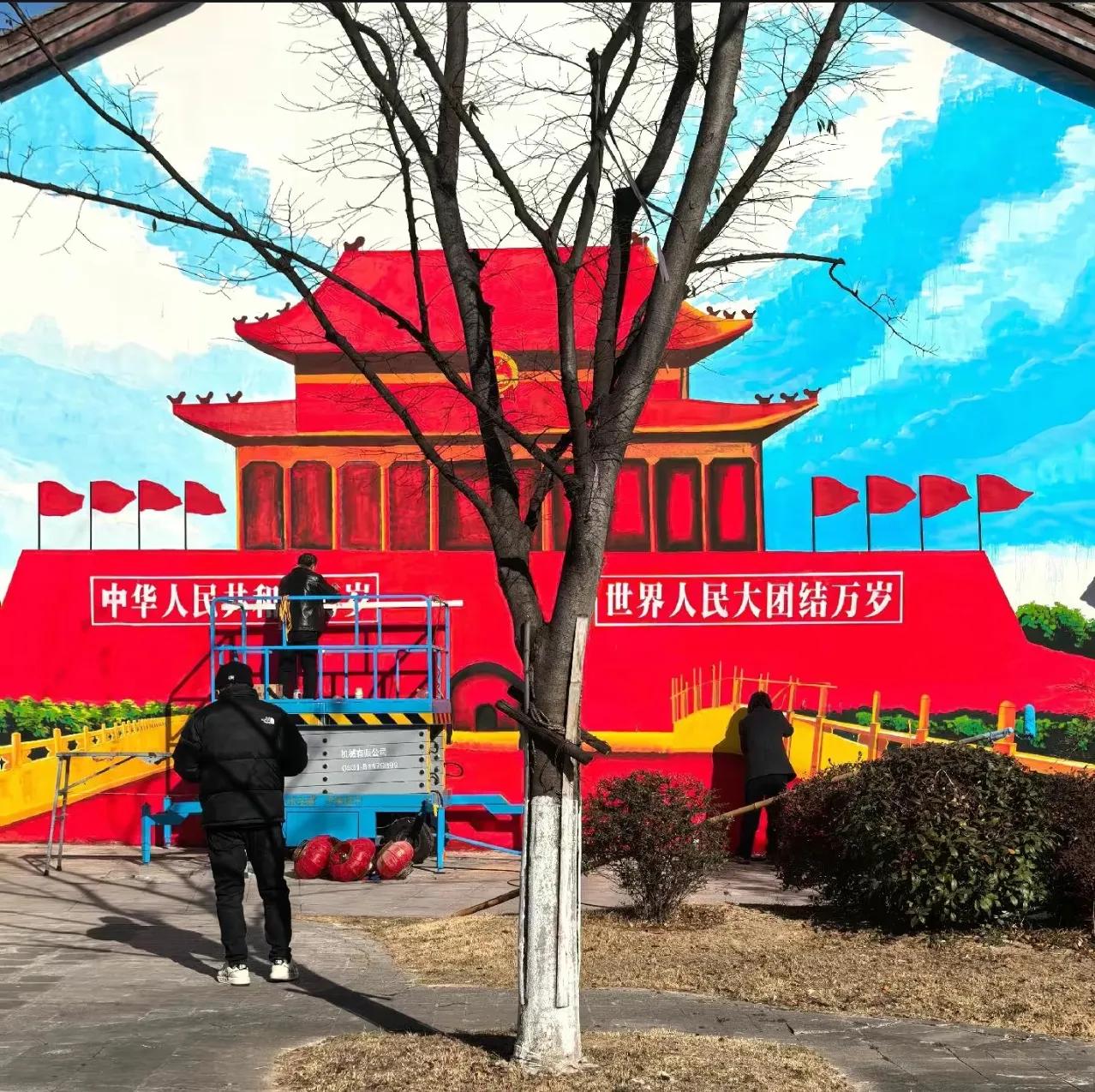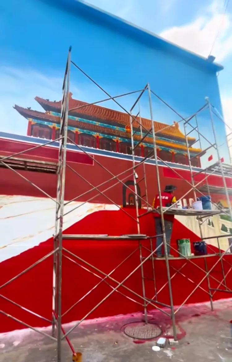 求求各位民间画家笔下留情啊! 河南商丘的墙画天安门这是热度降了不少,这流量面前,