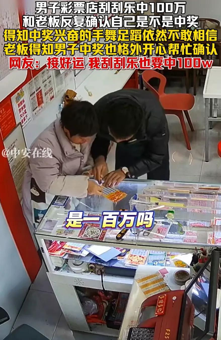浙江男子刮彩票遇人生拐点,100万大奖竟这样降临? 浙江一男子在彩票店刮刮乐,刮至中途突然起身,攥着彩票颤抖着找老板核对。老板确认后惊呼其喜中100万。监控显示,男子刮票时动作骤停,反复确认彩票信息,中奖后在店内又喊又跳。老板忙着拍照留念,男子则焦急询问领奖事宜。这场突如其来的幸运,正是毫无预兆的人生惊喜瞬间。 网友评论 这运气也太爆棚了吧!毫无预兆就天降百万,这人生拐点谁不羡慕啊! 富人哪会把时间耗在这上面,也就咱们普通人偶尔买张图个乐呵。 刮刮乐本来就是碰运气,结果完全没法预判,中大奖纯靠老天爷赏饭吃。 毫无预兆就转运了。 彩票这东西,记得有篇文章说过,富人和有稳定收入的人群基本不买。 说白了就是概率游戏,购买刮刮乐时无法确定结果,中大奖只能归结为运气。