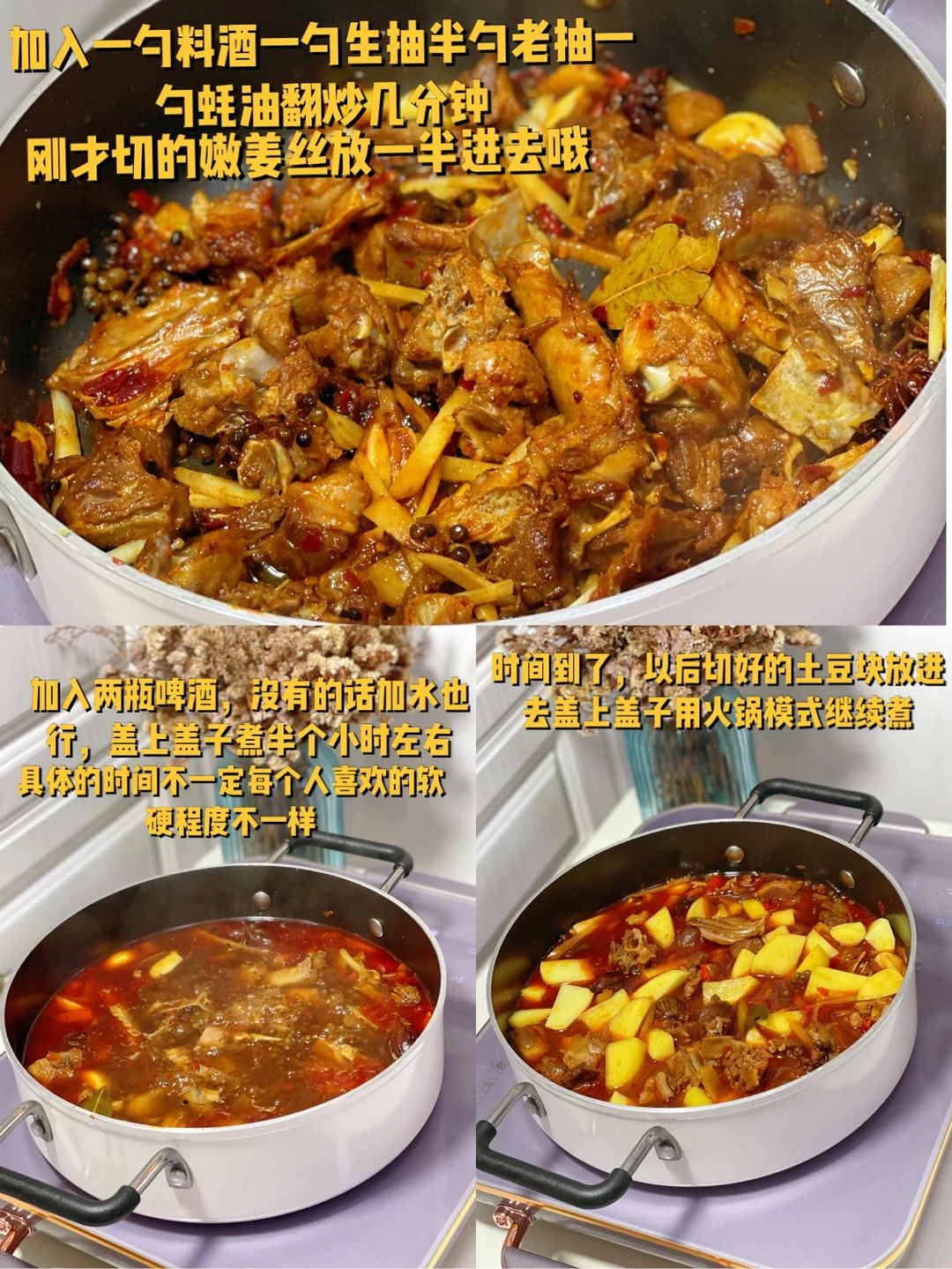 8. 加入两瓶啤酒,没有的话加水也行,盖上盖子煮半个小时左右,具体的时间不一定每个人喜欢的软硬程度不一样