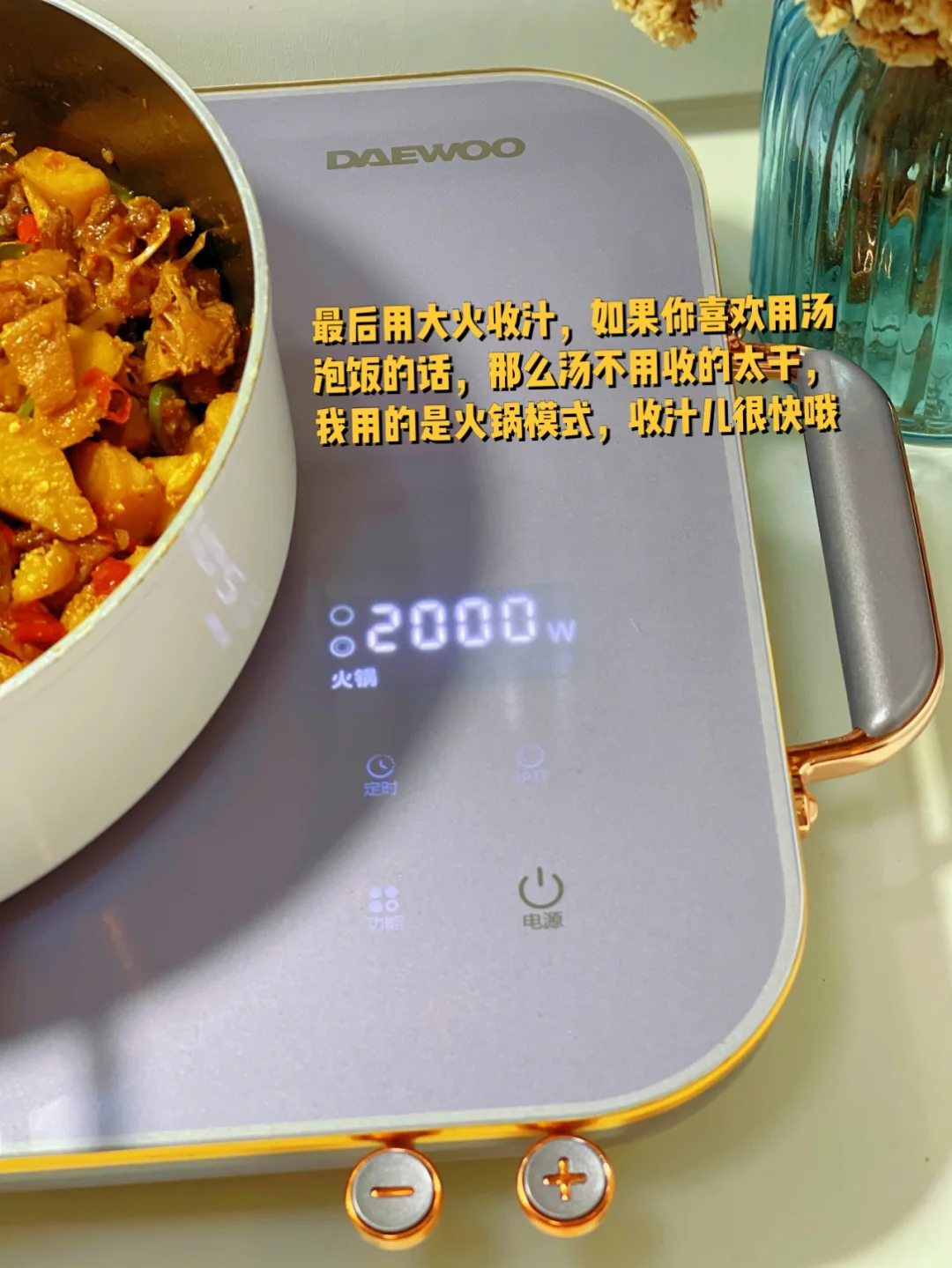 9. 时间到了,以后切好的土豆块放进去盖上盖子用火锅模式继续煮