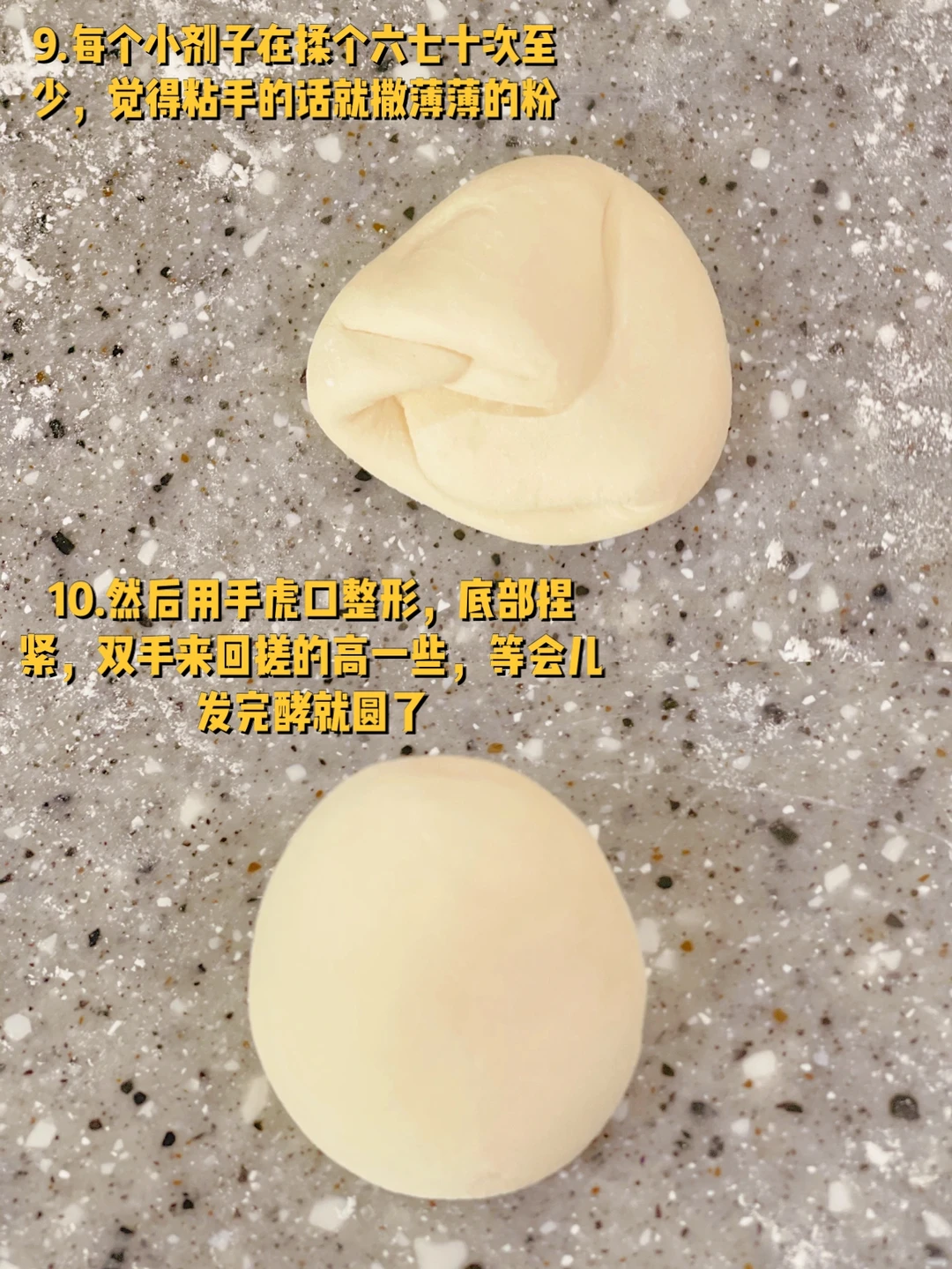10.然后用手整形,双手来回搓的高一些,等会儿发完酵就圆了