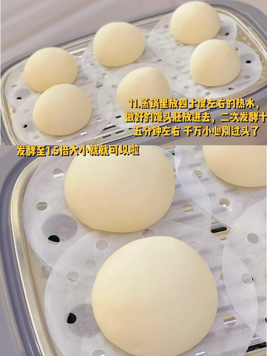 11.蒸锅里放四十度左右的热水,做好的馒头胚放进去,二次发酵十五分钟左右 千万小心别过头了