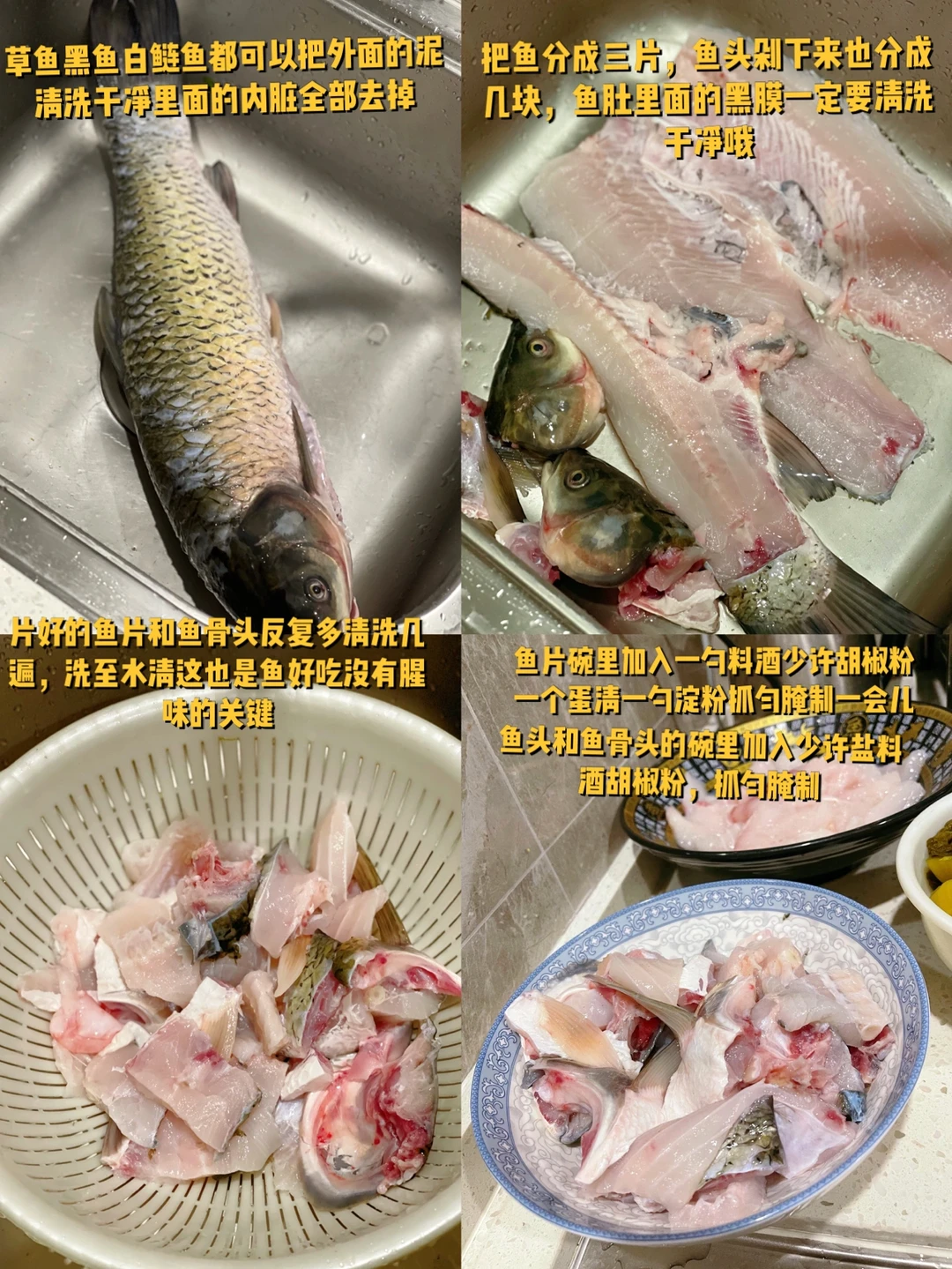 1. 草鱼黑鱼白鲢鱼都可以把外面的泥清洗干净里面的内脏全部去掉