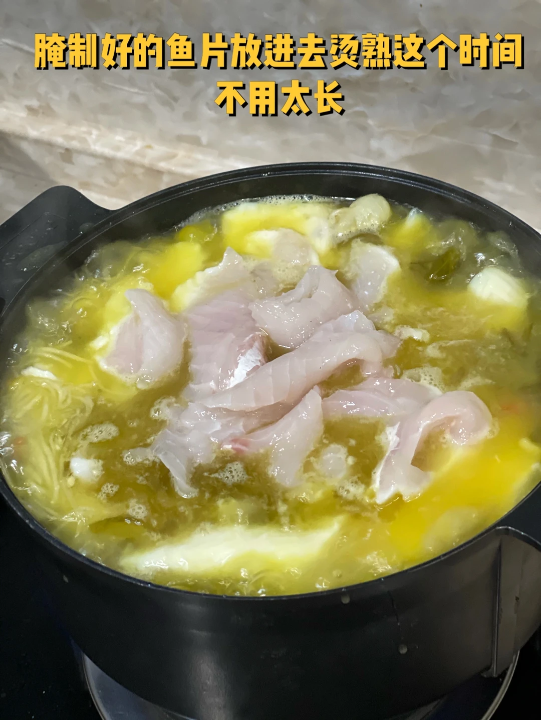 10. 腌制好的鱼片放进去烫熟这个时间不用太长