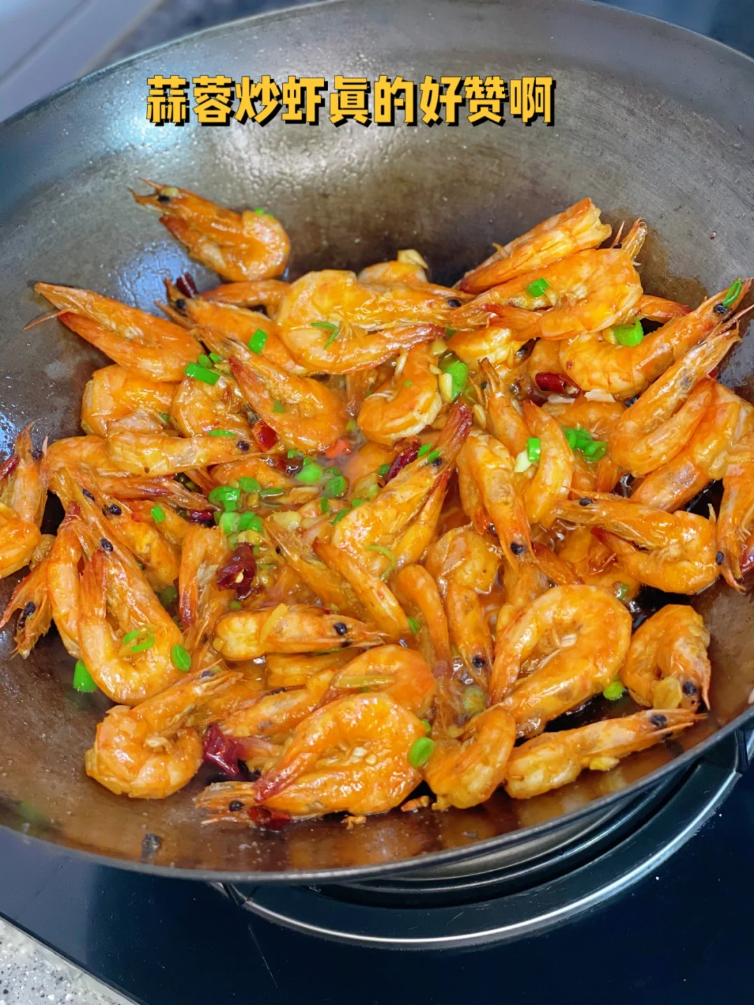 蒜蓉炒虾:虾去掉胡须,背部剪开去虾线,平底锅煎制微微金黄捞起来,重新洗锅上油小火爆香多一点的大蒜葱白生姜小米辣碎,虾丢进去,一勺料酒一勺生抽,适量盐鸡粉调味,出锅前撒葱花即可,超简单巨好吃