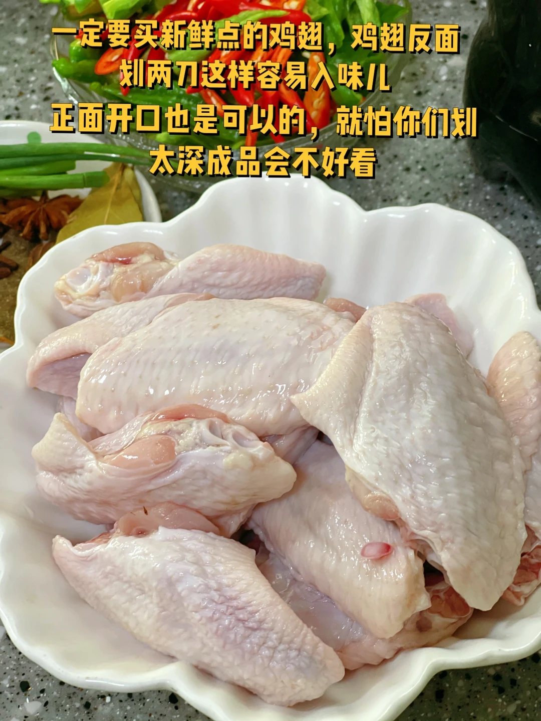 1. 一定要买新鲜点的鸡翅,鸡翅反面划两刀这样容易入味儿