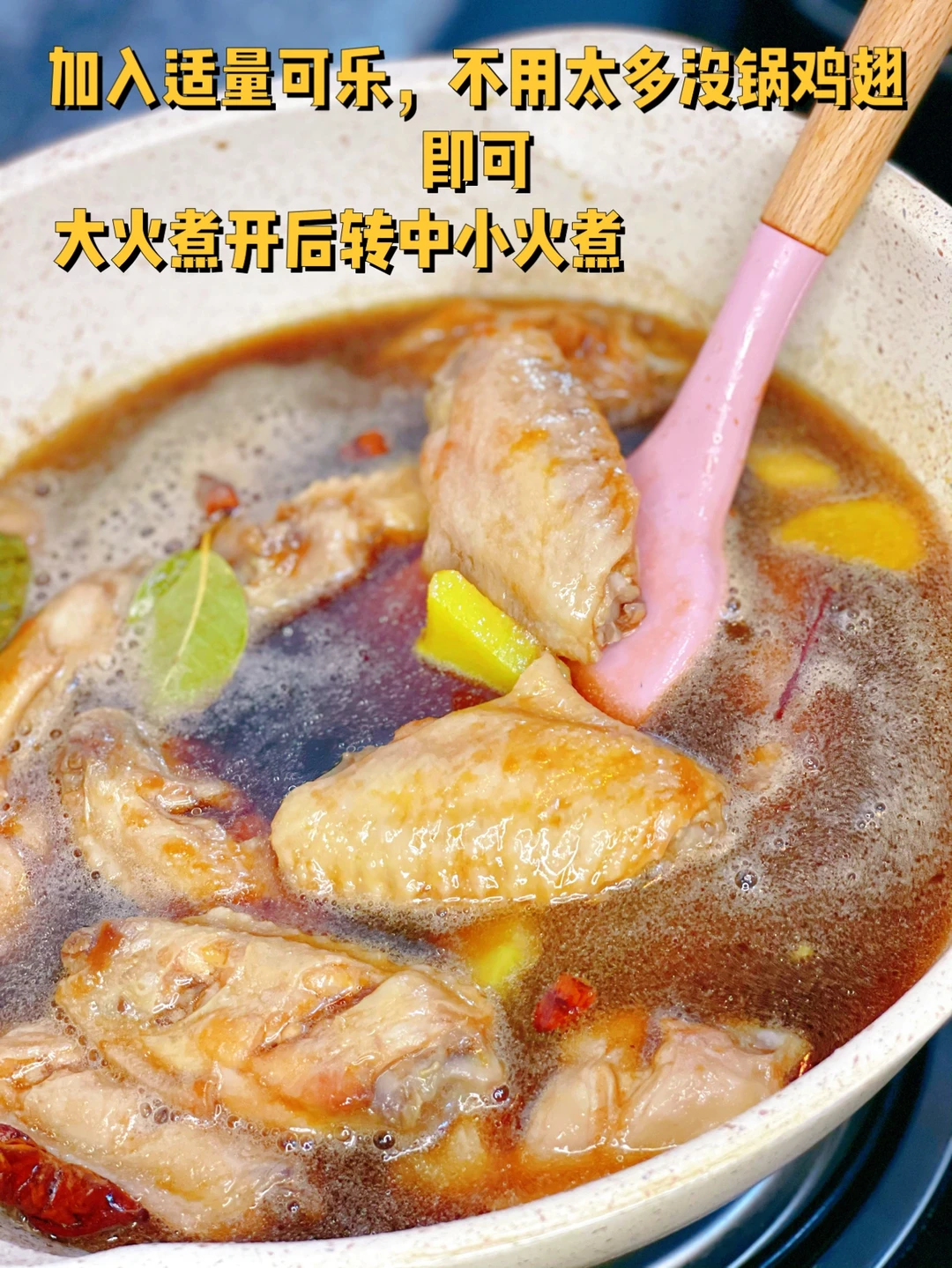 6. 加入适量可乐,不用太多没锅鸡翅即可