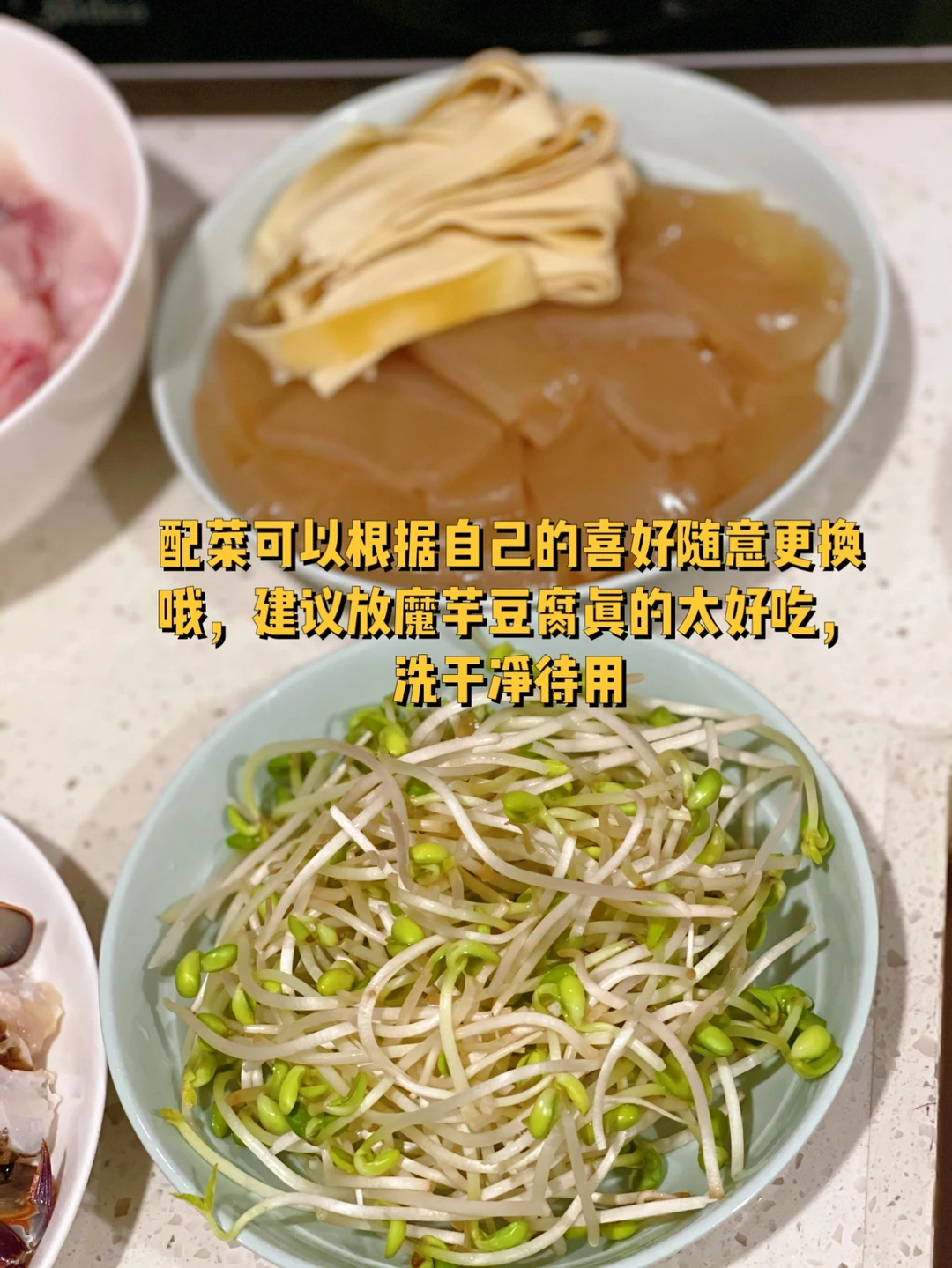 4. 配菜可以根据自己的喜好随意更换哦,建议放魔芋豆腐真的太好吃,洗干净待用