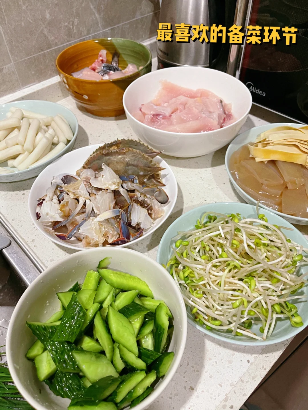 下午四点过去的时候朋友虾线和蟹都弄干净了,其他的我就自己来