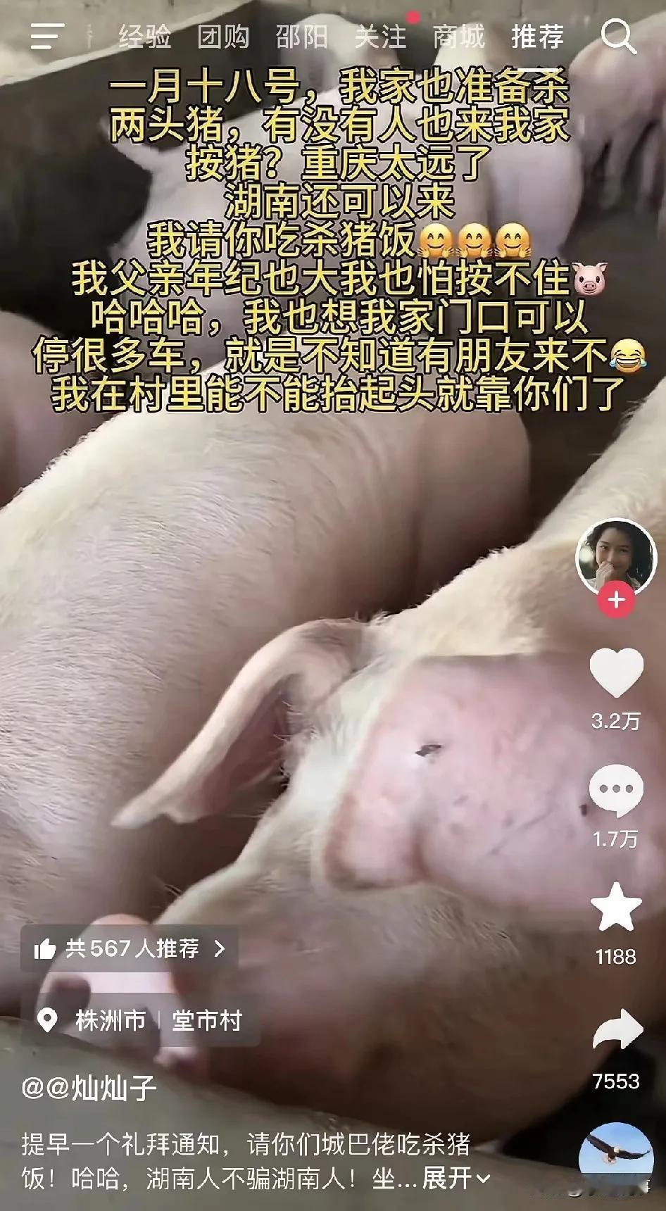 呆呆这下更呆了!原本昨天晚上已经发视频称,猪已经杀完了,今天就把剩下的肉吃完就不再办了!结果直接给我看懵了! 这事大伙大概都知道了吧!有个叫“呆呆”的小姑娘,在老家给奶奶办长寿宴,结果因为人太实在、饭菜太香,被网友捧成了“全网最想去吃的席”,从十里八乡火到了全国。 其实咱得先澄清下,呆呆火的源头不是长寿宴,是心疼老爹按不动年猪,随口喊网友来搭把手、管顿刨猪汤!谁能想到,一句朴实的求助,直接炸了锅! 她连夜建了5个500人群,秒满!原本说12号收尾,结果村口的车还在往村里涌,从村头堵到村尾,足足排了3公里! 呆呆彻底懵了,一边对着镜头道歉说“招待不周”,一边硬着头皮扛!两天两夜她只睡了4小时,眼睛熬得通红,嘴上还得招呼四面八方来的网友。 好在合川文旅反应快,凌晨就冲过来救场!补了两头黑猪,现场发钓鱼城门票,一天发8条视频蹭流量,把“泼天富贵”稳稳接住了 ! 网友也给力,有人自带碗筷,有人拎着特产,甚至有网红专程送卤鹅。上千人自发分工,按猪、烧火、洗菜,院子里热闹得比过年还疯。 可暖心背后,糟心事也跟着来!有个红衣女网红,举着手机怼到呆呆脸上,阴阳怪气问“涨了多少粉?赚了多少钱?”! 深夜宴席散场,主播们拍屁股就走,留下满地狼藉的碗筷油污,只剩呆呆爸妈拖着疲惫的身子收拾。呆呆看着这一幕,当场崩溃落泪,哭着求大家“帮我妈提点东西”! 这哪是来赴约,分明是有些人为了流量,把别人的真诚当跳板!连村民的庄稼都被踩坏,私人区域随便闯,好好的烟火气,被搅得乌烟瘴气。 但绝大多数网友是真的暖!有人在车里过夜就为了不缺席,有人主动帮着维持秩序,有人悄悄留下礼物就走。这份双向奔赴的善意,才是这场狂欢的底色。 呆呆从头到尾都没想着赚钱,粉丝涨到177万,直播间10万人在线,她也没带货,只说“大家别送礼物,来吃饭我欢迎” ! 这场意外走红,像一面照妖镜。照出了文旅部门的机智,照出了普通人的真诚,也照出了部分网红的贪婪。 其实大家奔着来的,哪里是一碗刨猪汤?是城里稀缺的烟火气,是久违的互帮互助,是对年味最纯粹的向往。 合川文旅的操作值得点赞,但流量过后,如何守住这份真实,不让淳朴变功利,才是更该思考的事。呆呆只是个普通姑娘,可别让流量压垮了她的真诚。 各位读者你们怎么看?欢迎在评论区讨论。