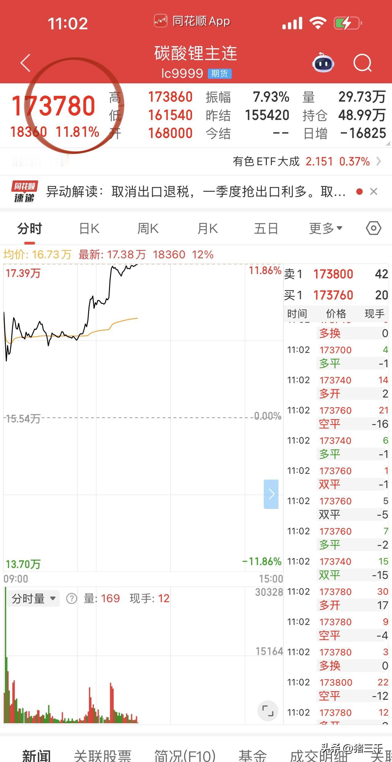 碳酸锂期货突破17万元/吨, 锂矿资源股翩翩起舞: 西藏珠峰封涨停, 赣锋锂业和天齐锂业又是稳稳的幸福。 氢氧化锂龙头天华新能也不错! 关键电池材料近期表现低调, 正极材料龙头湖南裕能面临大规模解禁, 市场有一层担忧; 永太科技一直未能突破需要耐心, 锂金属和六氟磷酸锂都是确认涨价的品种。 在不缺成交量的背景下, 会享受到估值泡沫! 但前提是你得拿得住…